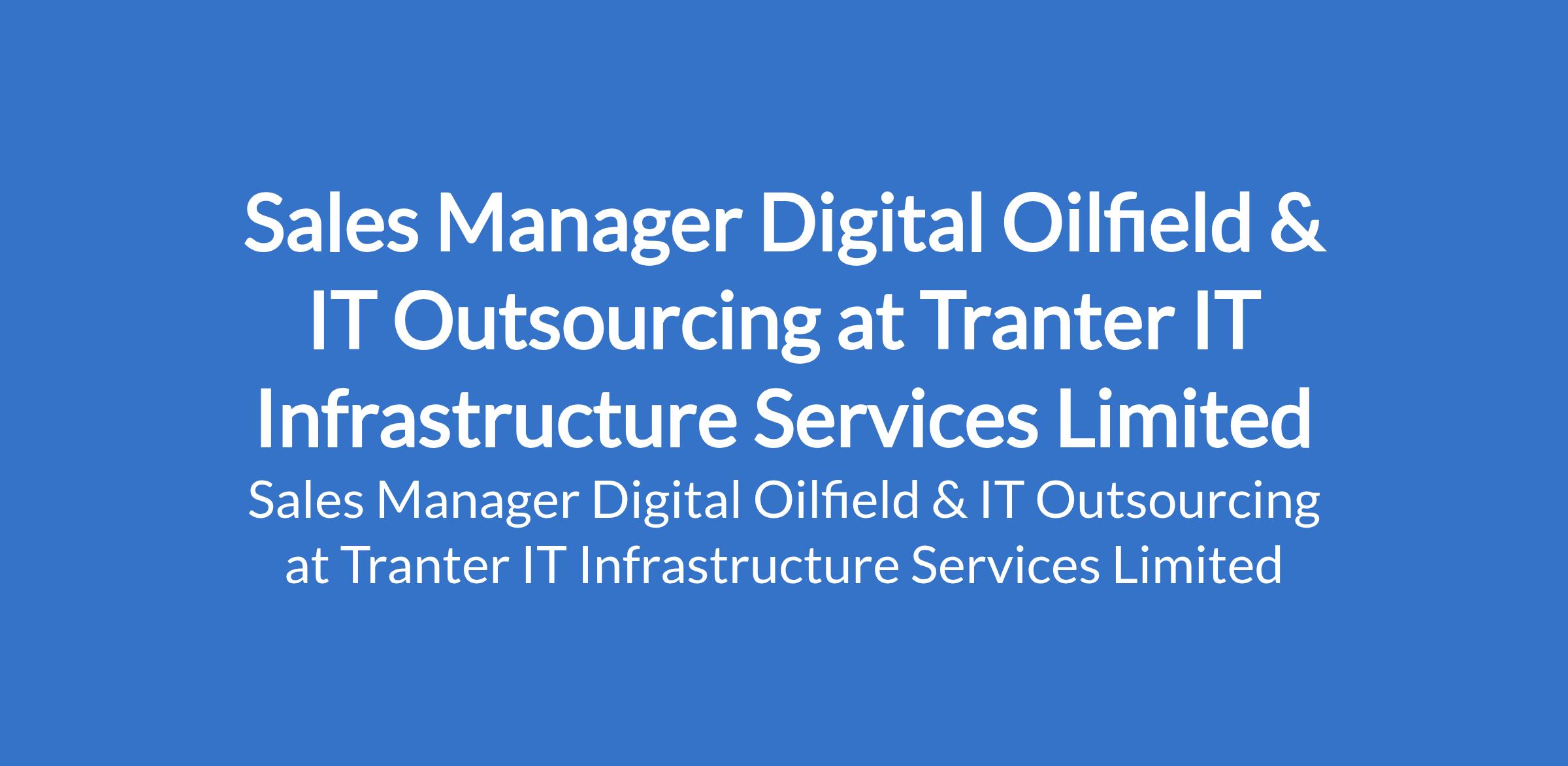 Tranter IT Infrastructure Services Limited is recruiting to fill the position of: Sales Manager Digital Oilfield & IT Outsourcing. The position is located in Lagos State. Interested candidates should possess a Bachelors Degree in Business, Engineering, IT, or related field with 58 years experience in enterprise sales or business development.