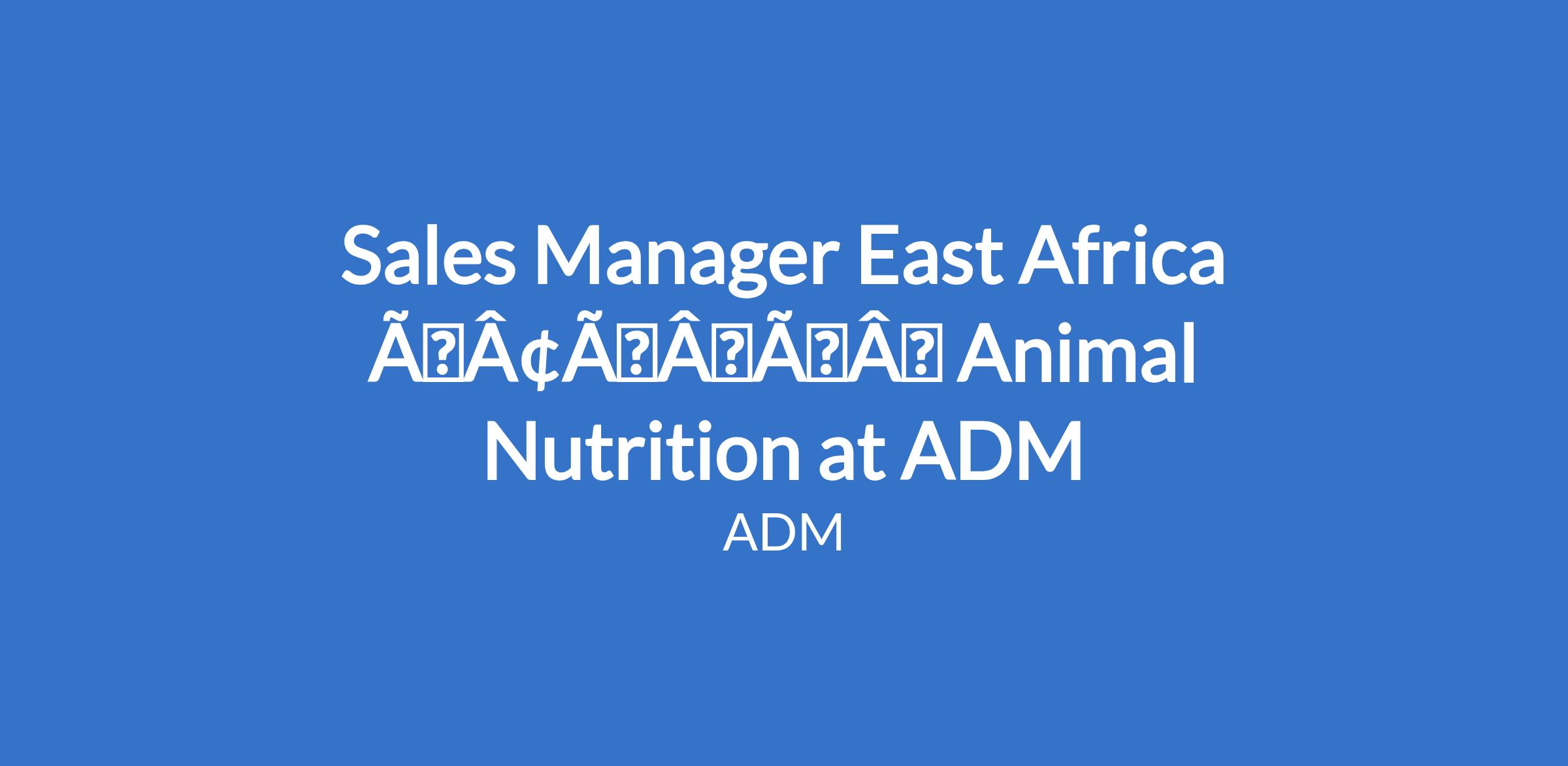 Sales Manager East Africa âÃÂàAnimal Nutrition at ADM