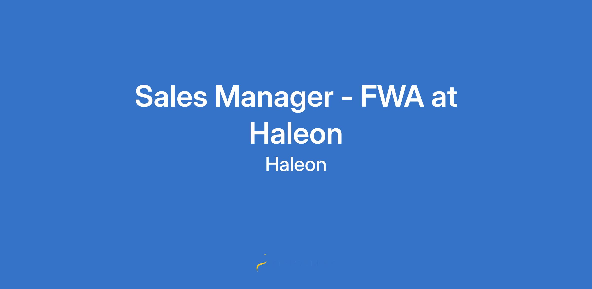 Sales Manager - FWA at Haleon