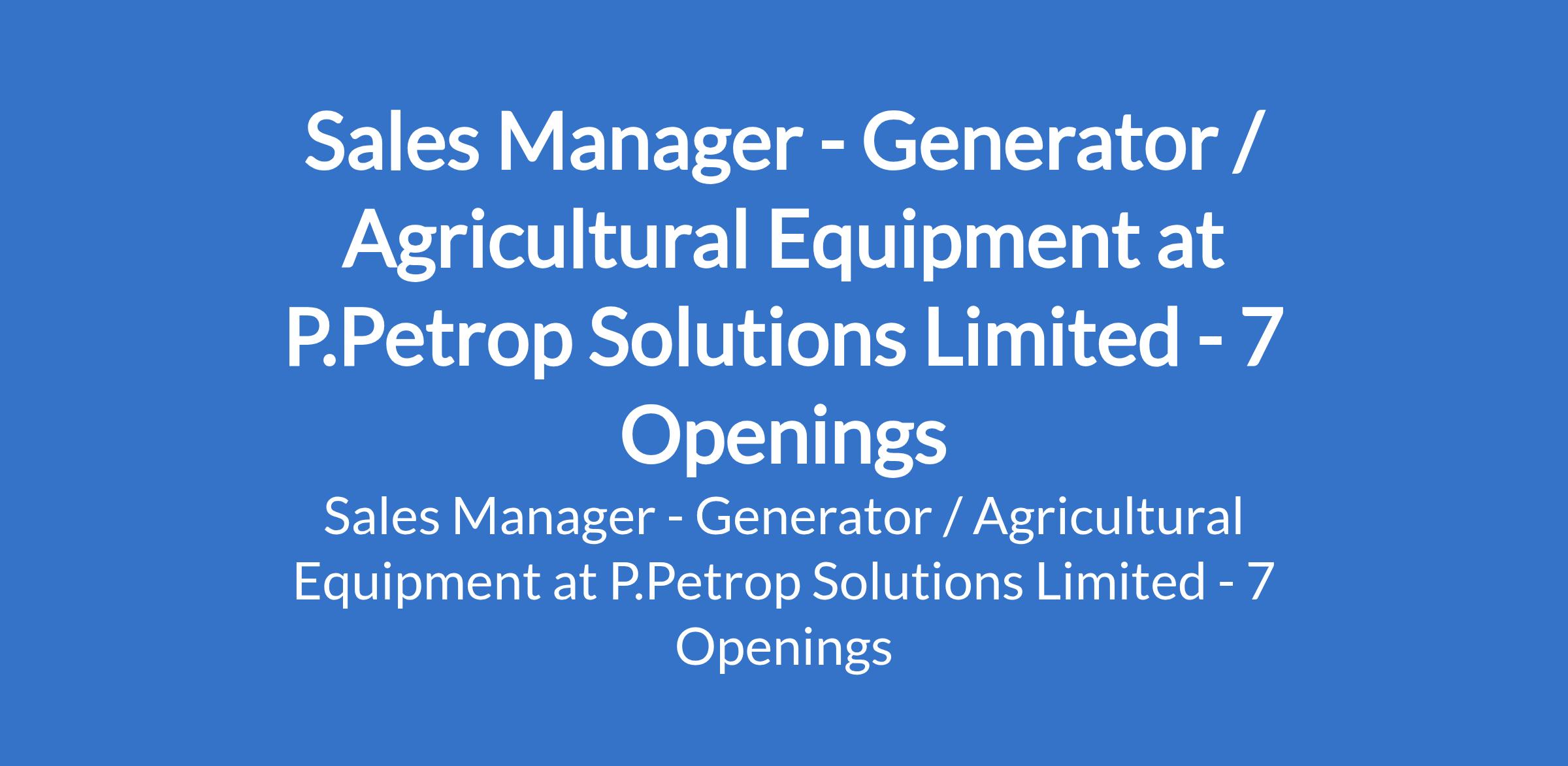P.Petrop Solutions Limited is recruiting to fill the position of: Sales Manager - Generator / Agricultural Equipment. The position is located in Ekiti, Kwara, Lagos, Ogun, Ondo, Osun, and Oyo States. Salary: N500,000 - N800,000 monthly. Interested candidates should possess a Bachelor's Degree in Business, Marketing, Engineering, or a related field with 5 - 12 years of experience in generator, power, and agricultural equipment, or industrial machinery sales.