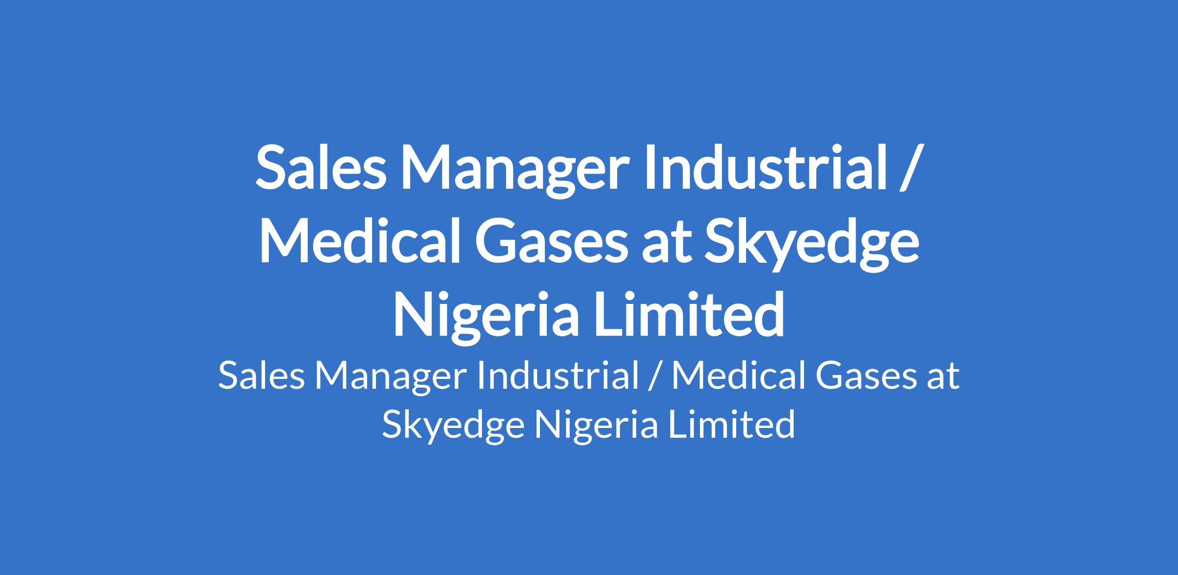 Skyedge Nigeria Limited - Our client, a leading multinational company is recruiting to fill the position of: Sales Manager Industrial / Medical Gases. The Position is Located in Lagos State. Interested candidates should possess a Bachelors Degree / HND in Chemistry, Chemical Engineering, Business Management, or related fields with a minimum of 5 years with proven record in industrial/medical gases in Nigeria.