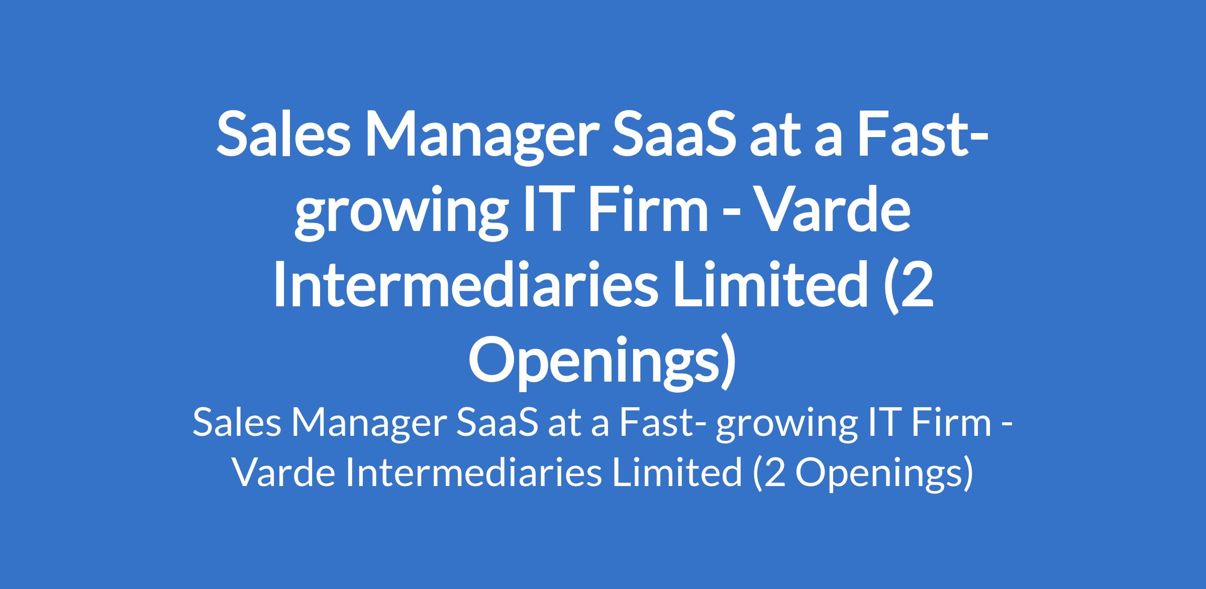 Varde Intermediaries Limited - Our client, a fast-growing IT Firm is recruiting to fill the position of: Sales Manager SaaS. The position is located in Abuja and Lagos State. Interested candidates should possess relevant qualifications with years of work experience.