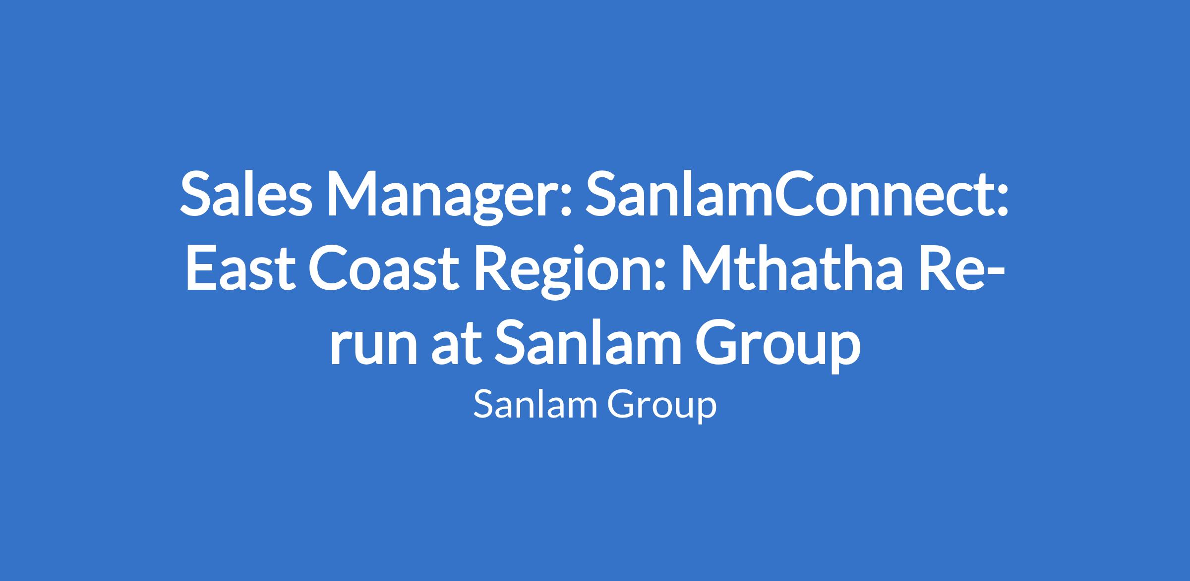 Sales Manager: SanlamConnect: East Coast Region: Mthatha Re-run at Sanlam Group