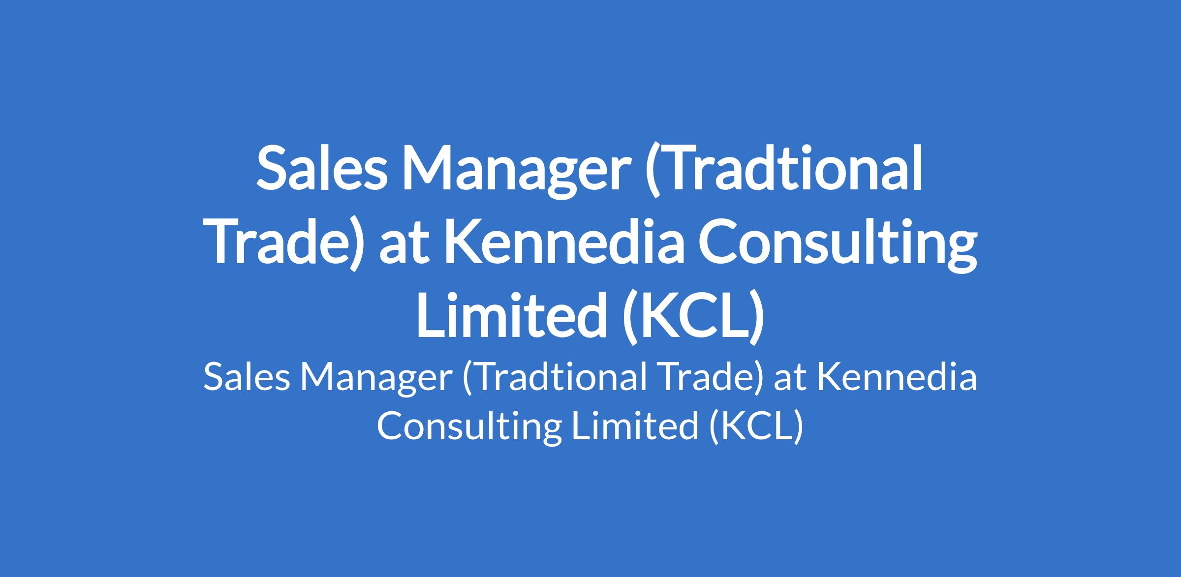 Kennedia Consulting Limited (KCL) is recruiting to fill the position of: Sales Manager (Tradtional Trade). The position is located in Lagos State. Interested candidates should possess a Bachelors Degree in Marketing, Business, or related field with 4 7 years experience in FMCG / traditional trade sales.