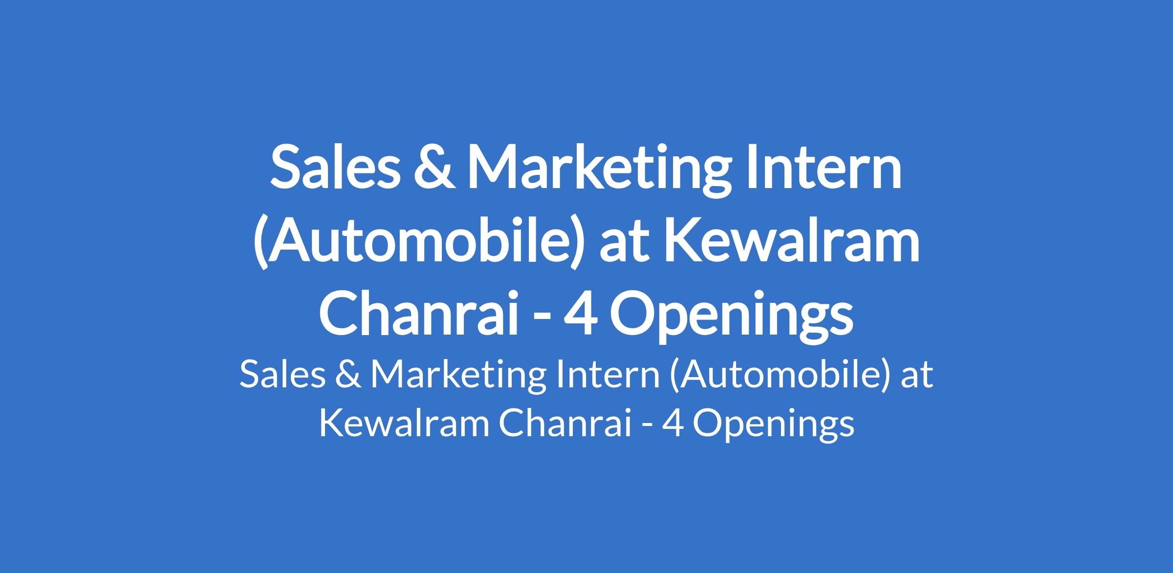 Sales & Marketing Intern (Automobile) at Kewalram Chanrai - 4 Openings
