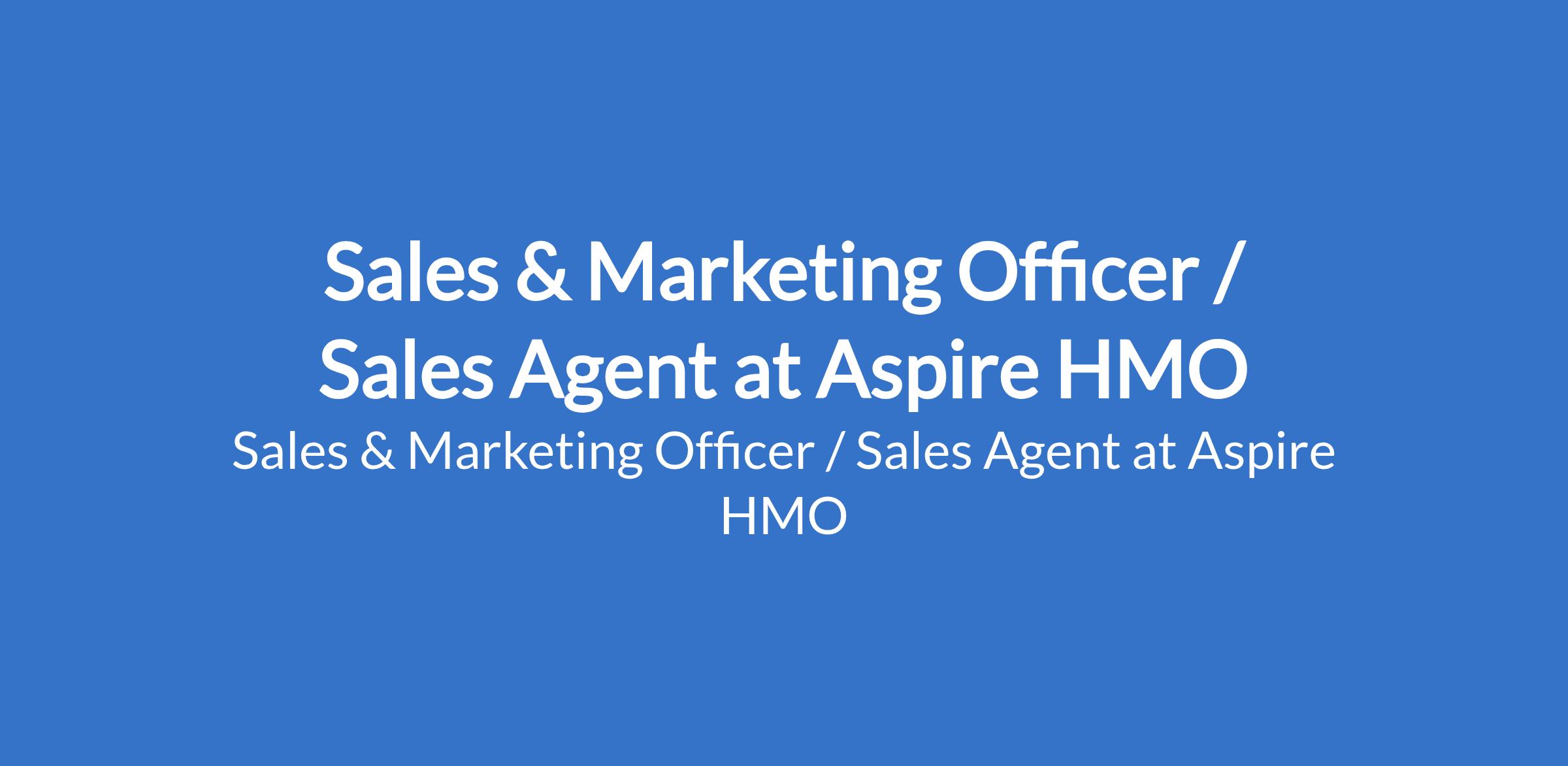 Aspire HMO is recruiting to fill the position of: Sales & Marketing Officer / Sales Agent. The position is located in Lagos State. Interested candidates should possess relevant academic qualifications with a minimum of 1 year relevant work experience.