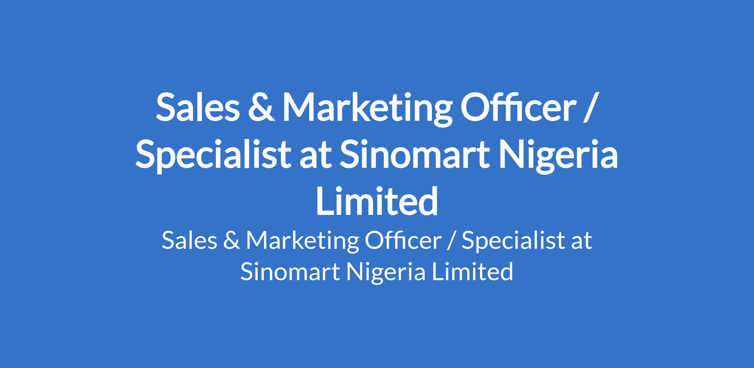 Sinomart Nigeria Limited is recruiting to fill the position of: Sales & Marketing Officer / Specialist. The position is located in Victoria Island, Lagos State. Interested candidates should possess a Bachelor's Degree in Marketing, Business Administration, or a related field with a minimum of 4 years proven experience in Sales and Marketing within the FMCG industry.