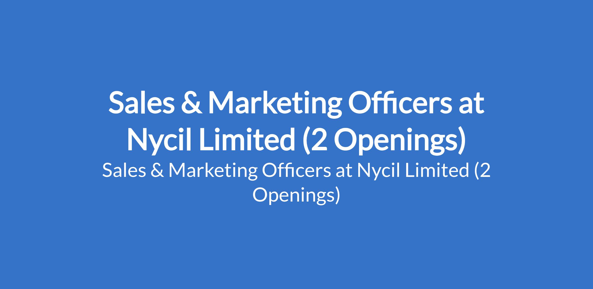 Nycil Limited is recruiting to fill the position of: Sales & Marketing Officer. The position is located in Onitsha - Anambra, and Benin - Edo States. Salary: N300,000 - N400,000 per month. Interested candidates should possess a B.Sc Degree in Chemistry, Marketing, Economics, or any related subject with 3-10 years of experience in sales, marketing, or operations management, preferably in a manufacturing company.