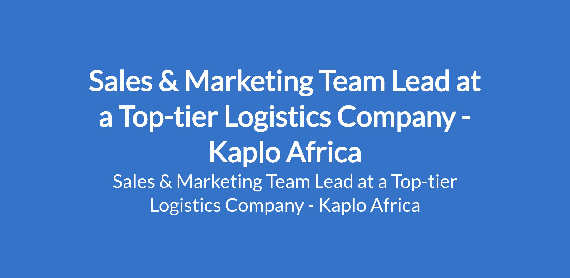 Kaplo Africa - Our client, a Top-tier Logistics Company is recruiting to fill the position of: Sales & Marketing Team Lead. The position is located in Lagos State. Salary: N350,000 N400,000 monthly. Interested candidates should possess a Bachelors Degree in Marketing, Business Administration, or related fields with 58 years experience in Sales & Marketing, preferably within logistics or supply chain.