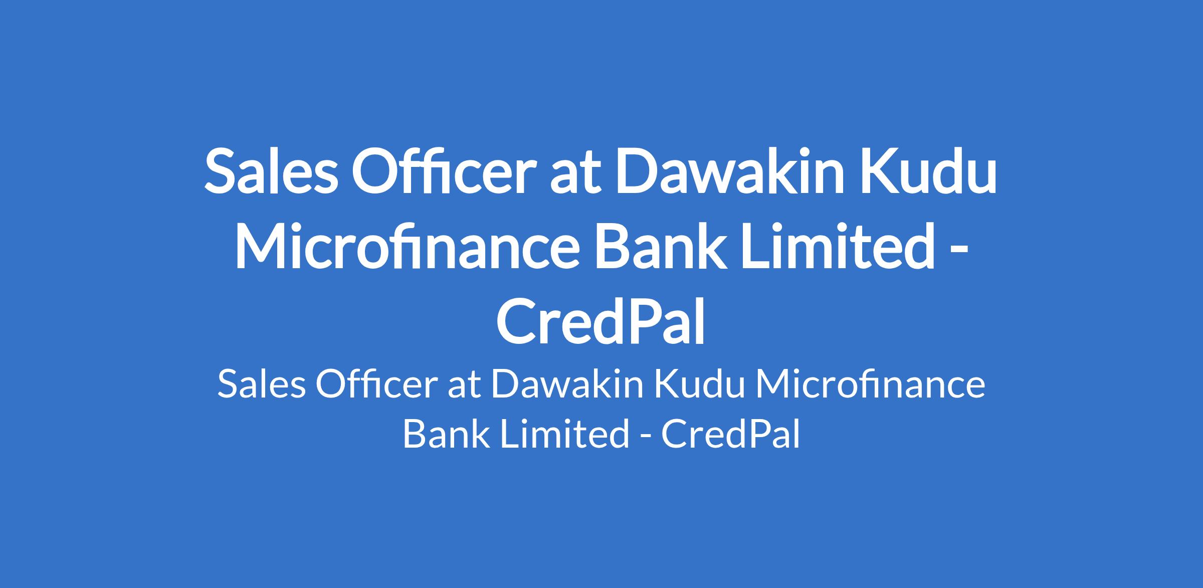 Dawakin Kudu Microfinance Bank Limited a sister company of Credpal is recruiting to fill the position of: Sales Officer. The position is located in Kano State. Interested candidates should possess an OND / HND / Bachelors Degree in any relevant field with a minimum of 3 years experience strictly within a Microfinance Bank (MFB) in a sales or business development role must reside in Kano State, preferably within or around Dawakin Kudu and its environs.