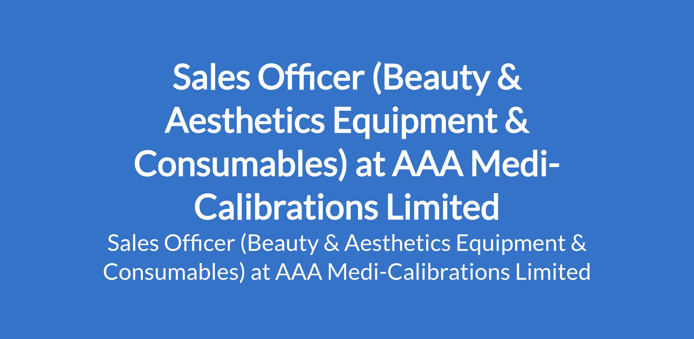 AAA Medi-Calibrations Limited is recruiting to fill the position of: Sales Officer (Beauty & Aesthetics Equipment & Consumables). The position is located in Lagos State. Interested candidates should possess a Bachelors Degree or relevant qualification with 35 years of sales/technical experience (Aesthetician, Nurse, or wellness industry preferred).