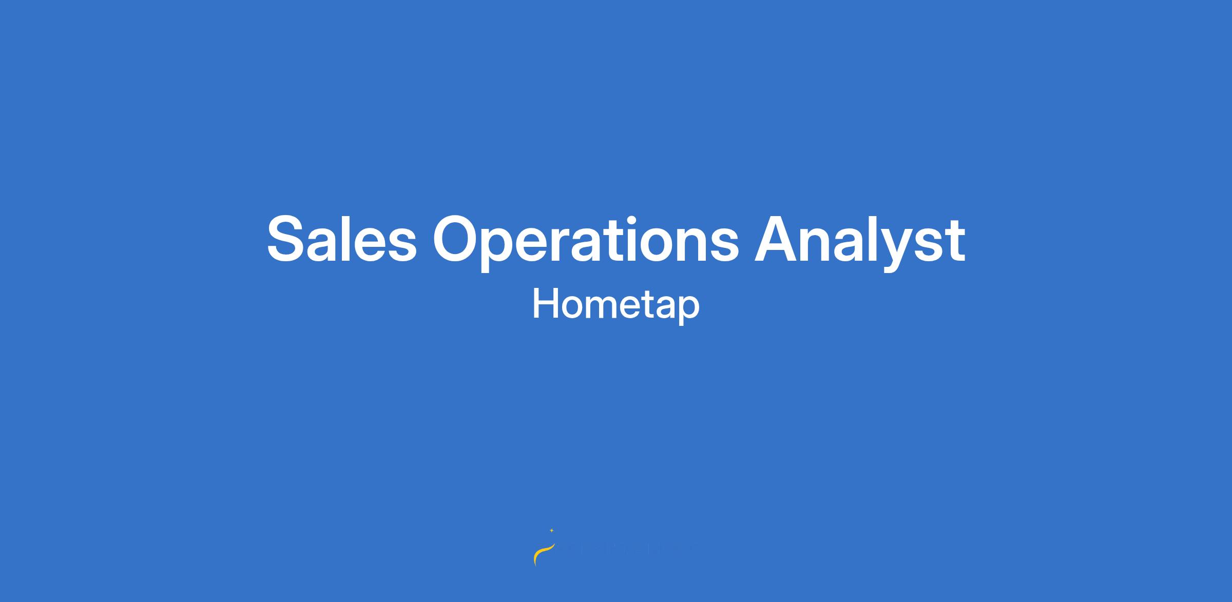 Here at Hometap, weâre collaborative, passionate, and always ready to roll up our sleeves to create solutions that help people get more out of homeownership â and out of life. Our first product, a home equity investment, gives homeowners the opportunity to quickly access the equity theyâve built in their home to pay for whatâs most important to them, from handling debt to finally making much-needed renovations, without taking on debt. We work hard, and have some fun along the way, too. You donât have to take our word for it: The Boston Globe and Forbes have recognized us as a great place to work, and weâve been honored for our commitment to innovation in the fintech space by Inc., HousingWire, and more! In case you need any more convincing, we also provide competitive compensation, healthcare coverage, unlimited PTO, a generous share package, and a strong culture with plenty of opportunities for team-building and camaraderie. Interested in joining us on our mission to make homeownership less stressful and more accessible? Weâd love to talk. Who you are: As a Sales Operations Analyst, youâll use your passion for technology and analysis to assist with sales compensation and the administration of our sales technology stack, supporting the development and optimization of Hometapâs sales initiatives. Reporting to the Sales Operations Manager, youâll join the growing Sales Operations team which works closely with Sales, Originations, Marketing, Legal, Underwriting, Finance and Product. Youâll support the Homeowner journey, from lead generation to funded investments, with plenty of room to learn, innovate, automate, and experiment in between. Youâre a great fit if you bring experience in a Sales Operations role, compensation and target setting, strong analytical and critical thinking skills, a