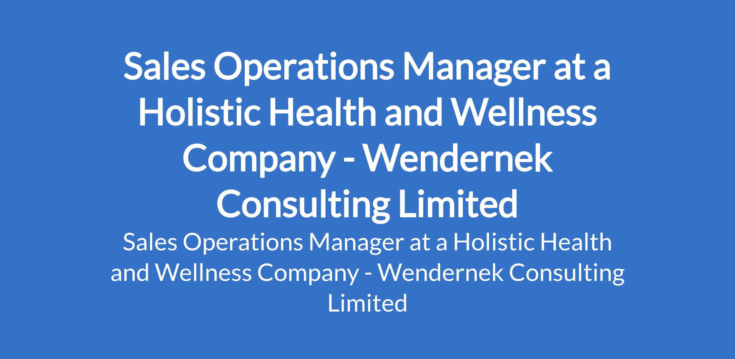 Wendernek Consulting Limited - Our client, a holistic health and wellness company is recruiting to fill the position of: Sales Operation Manager. Salary: N400,000 net per month. The position is located in Victoria Island, Lagos State. Interested candidates should possess a Bachelor's Degree in Business, related discipline or equivalent in training and experience with a minimum of 3 years experience in Finance, Sales Operations, Product Management or other similar background. Experience in the hospitality industry would be an added advantage.