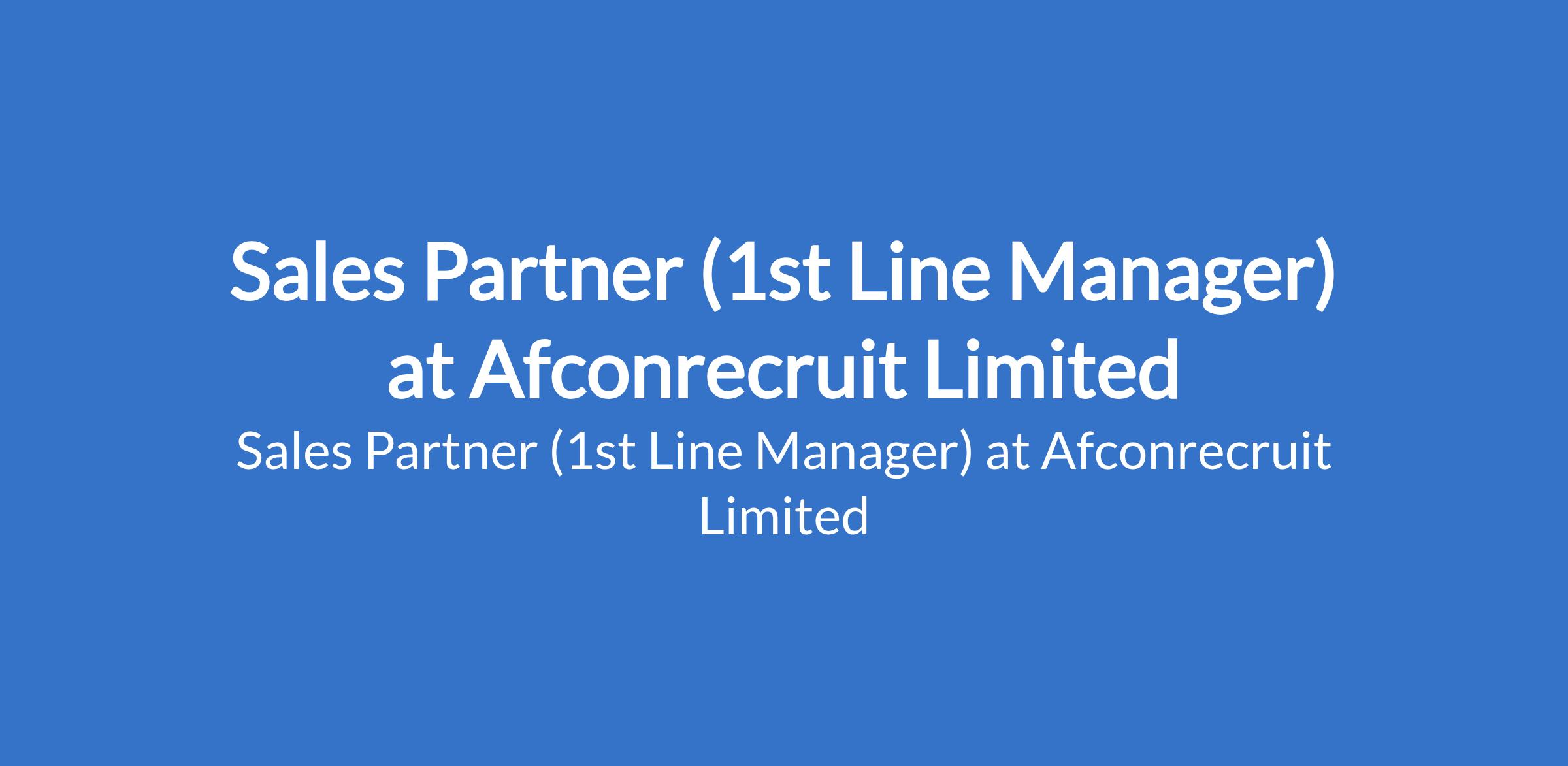 Afconrecruit Limited is recruiting to fill the position of: Sales Partner (1st Line Manager). The position is located in Lagos Mainland, Lagos State. Salary: NGN100,000 N130,000 / month. Interested candidates should possess a Bachelor's Degree in Business Administration, Sales & Marketing, or a related field with 3 - 4 years of proven sales experience in hardcore FMCG (Food) in Lagos.