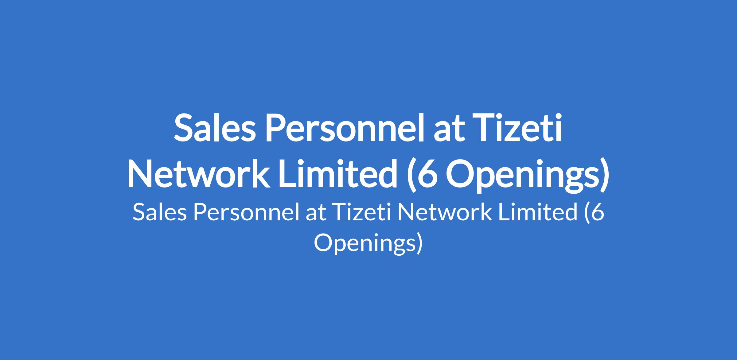Tizeti Network Limited is recruiting to fill the position of: Sales Personnel. The position is located in Akwa Ibom, Anambra, Cross River, Enugu, Imo, and Lagos State. Interested candidates should possess a Bachelor's Degree with 0-3 years experience.