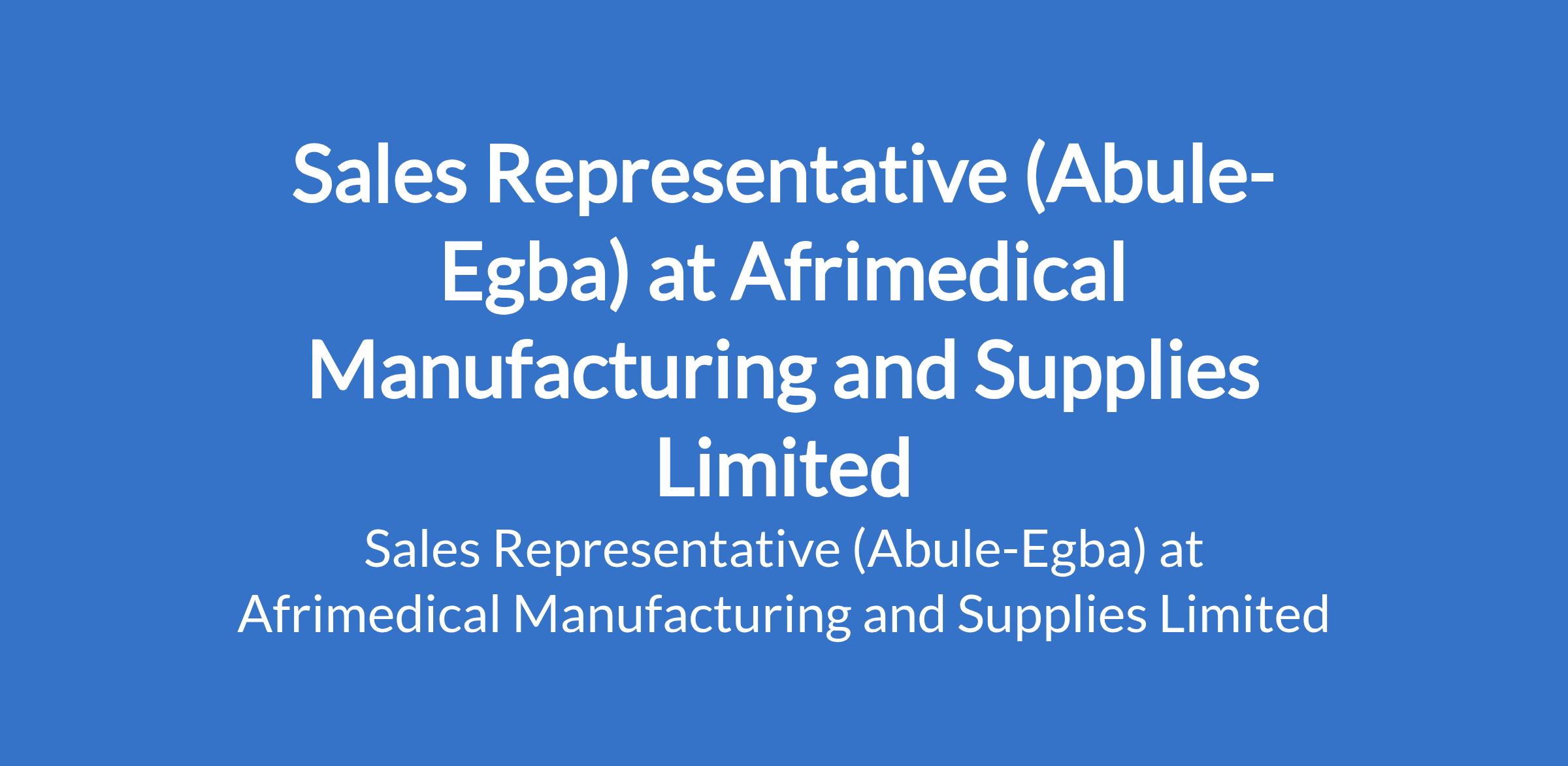 Afrimedical Manufacturing and Supplies Limited is recruiting to fill the position of: Sales Representative. The position is located in Abule-Egba, Lagos State. Interested candidates should possess a Bachelors Degree in Business, Marketing, Sales, or a related field with proven experience as a Sales Representative or similar sales role.