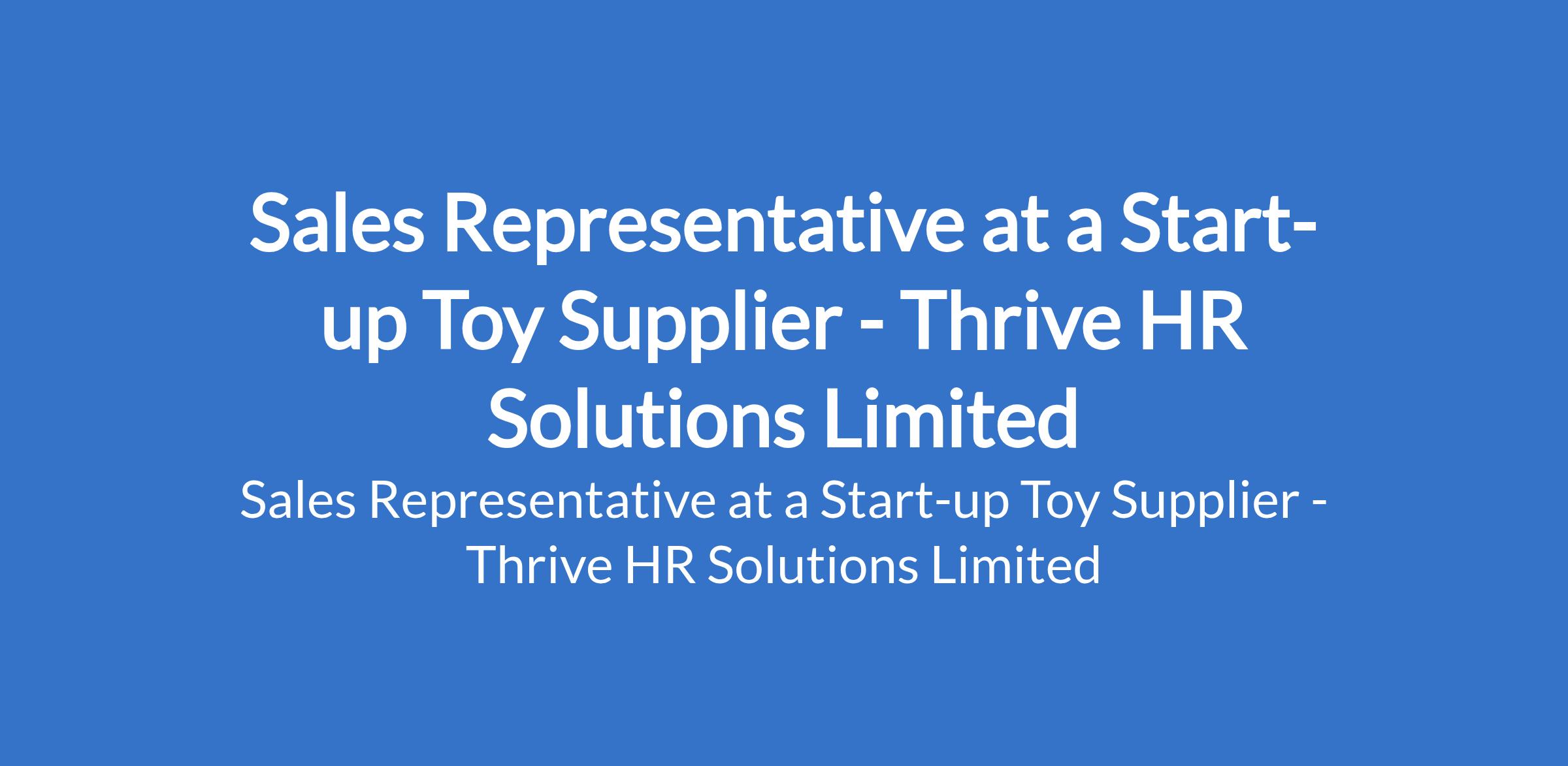 Thrive HR Solutions Limited - Our client, a start-up toy supplier is recruiting to fill the position of: Sales Representative. The position is located in Idumota / Lagos Island, Lagos State. Salary: N70,000 - N100,000 Monthly. Interested candidates should possess a minimum of an SSCE qualification with experience in retail or sales, especially in a store setting.
