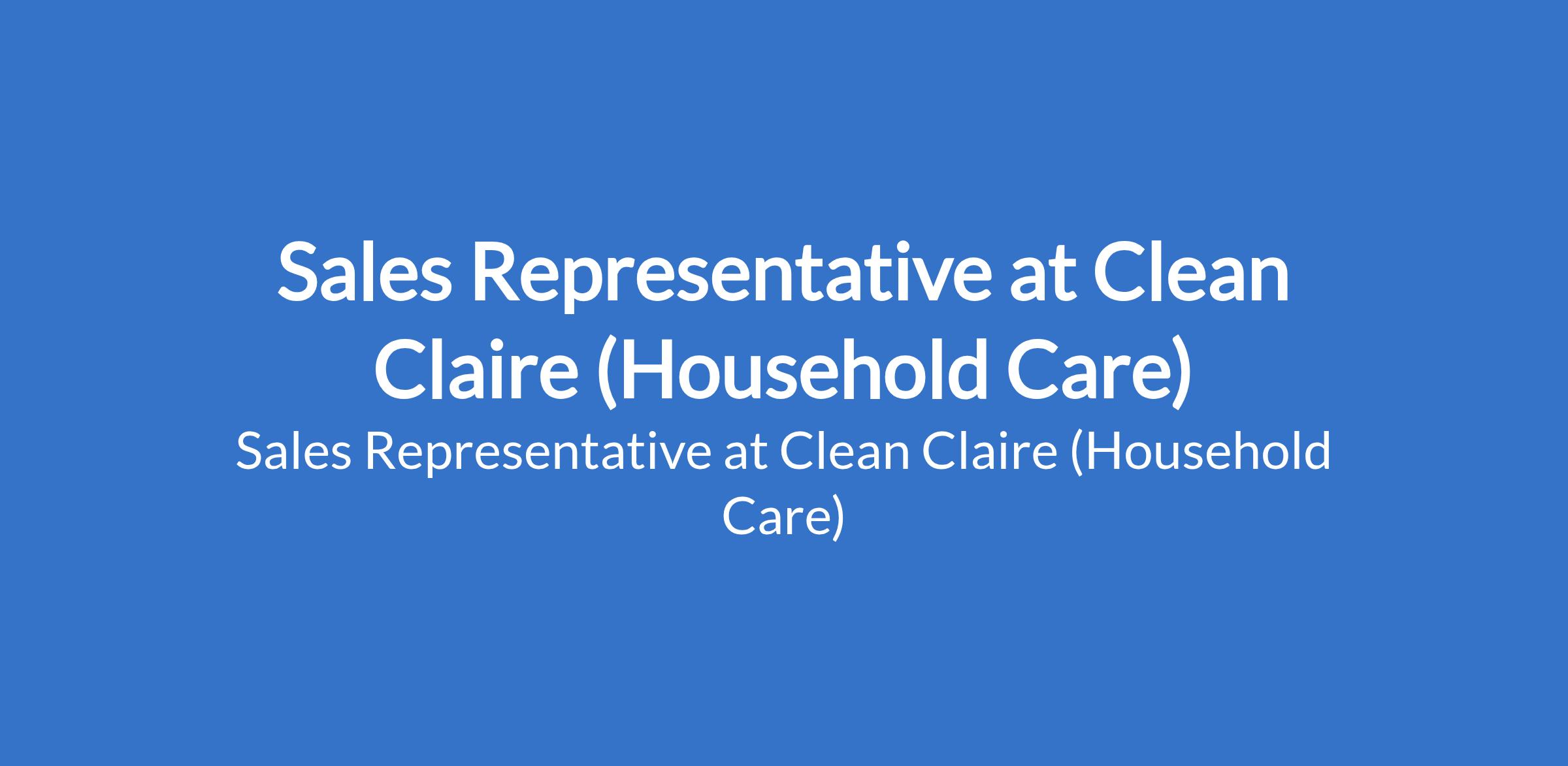 Sales Representative at Clean Claire (Household Care)