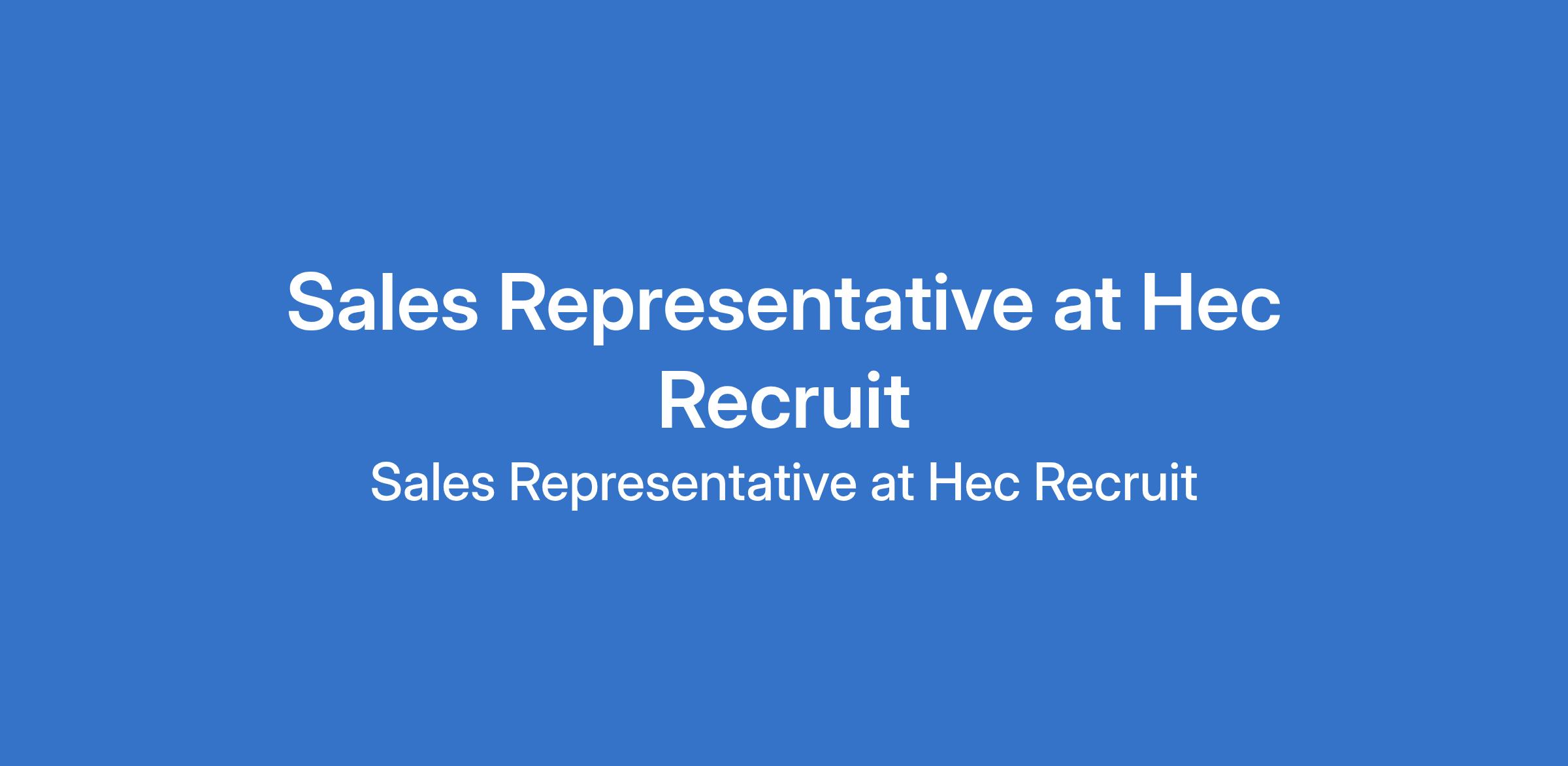 Sales Representative at Hec Recruit