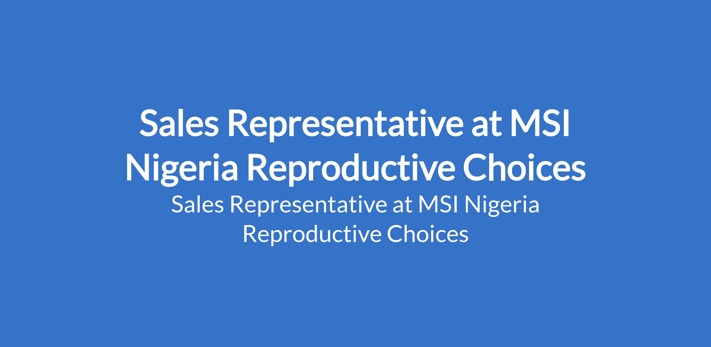 MSI Nigeria Reproductive Choices is recruiting to fill the position of: Sales Representative. The position is located in Sagamu, Ogun State. Interested candidates should possess a university Degree in Biological, Physiological Sciences and Pharmacy with a minimum of 1 year of sales or related experience or training in pharmaceutical or healthcare.