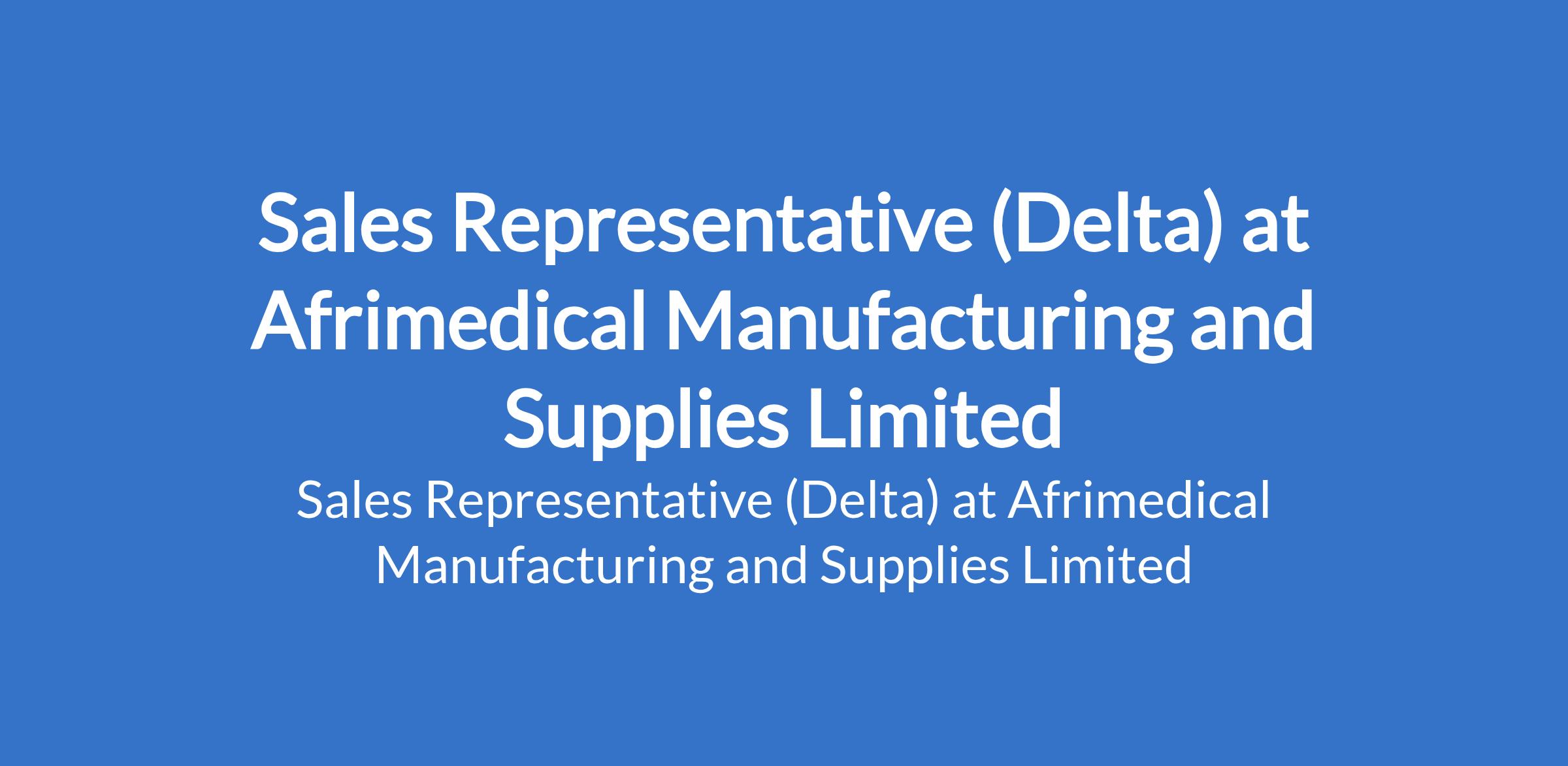 Afrimedical Manufacturing and Supplies Limited is recruiting to fill the position of: Sales Representative. The position is located in Delta State. Interested candidates should possess a Bachelors Degree in Business, Marketing, Sales, or a related field with proven experience as a Sales Representative or similar sales role.
