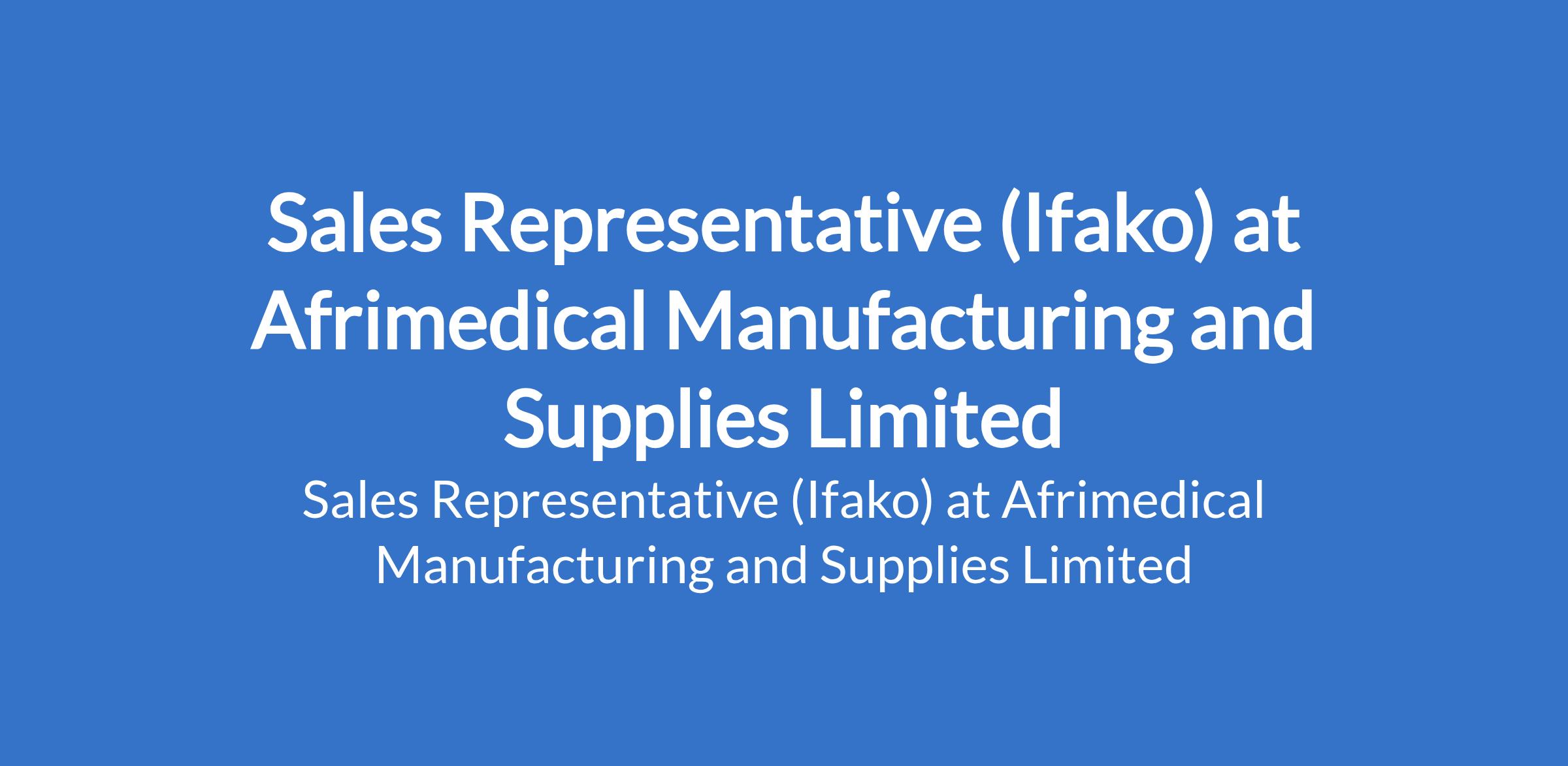 Afrimedical Manufacturing and Supplies Limited is recruiting to fill the position of: Sales Representative. The position is located in Ifako, Lagos State. Interested candidates should possess a Bachelors Degree in Business, Marketing, Sales, or a related field with proven experience as a Sales Representative or similar sales role.
