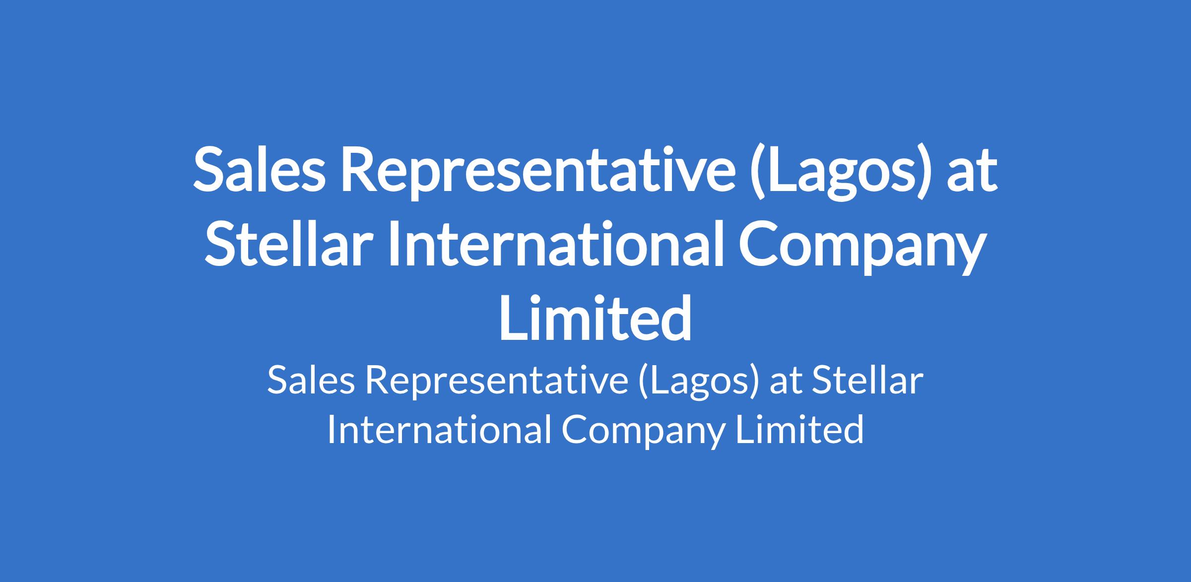 Stellar International Company Limited is recruiting to fill the position of: Sales Representative. The position is located in Lagos State. Interested candidates should possess a minimum of OND qualification with experience.