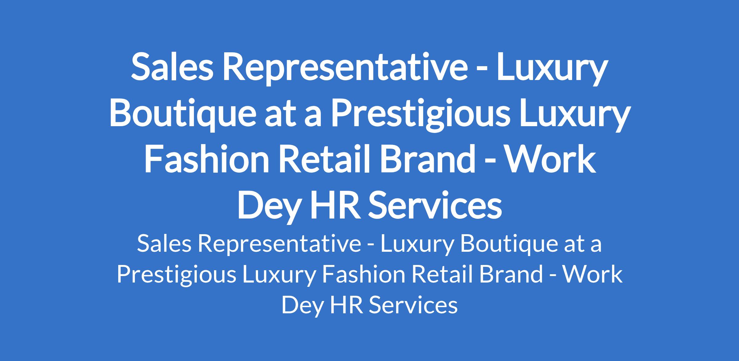 Work Dey HR Services - Our client, a prestigious luxury fashion retail brand is recruiting to fill the position of: Sales Representative - Luxury Boutique. The position is located in Wuse 2, Abuja (FCT). Salary: N200,000 - N250,000 / month. Interested candidates should possess a minimum of OND / HND / Bachelors Degree in any discipline with 25 years retail or sales experience, preferably in fashion or luxury goods.