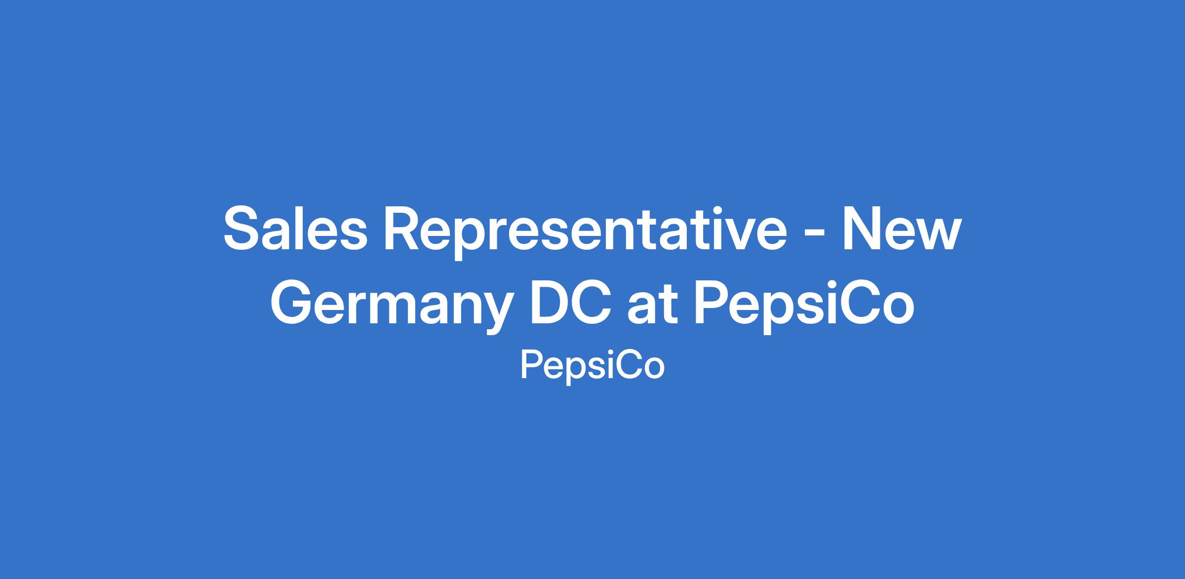 Sales Representative - New Germany DC at PepsiCo