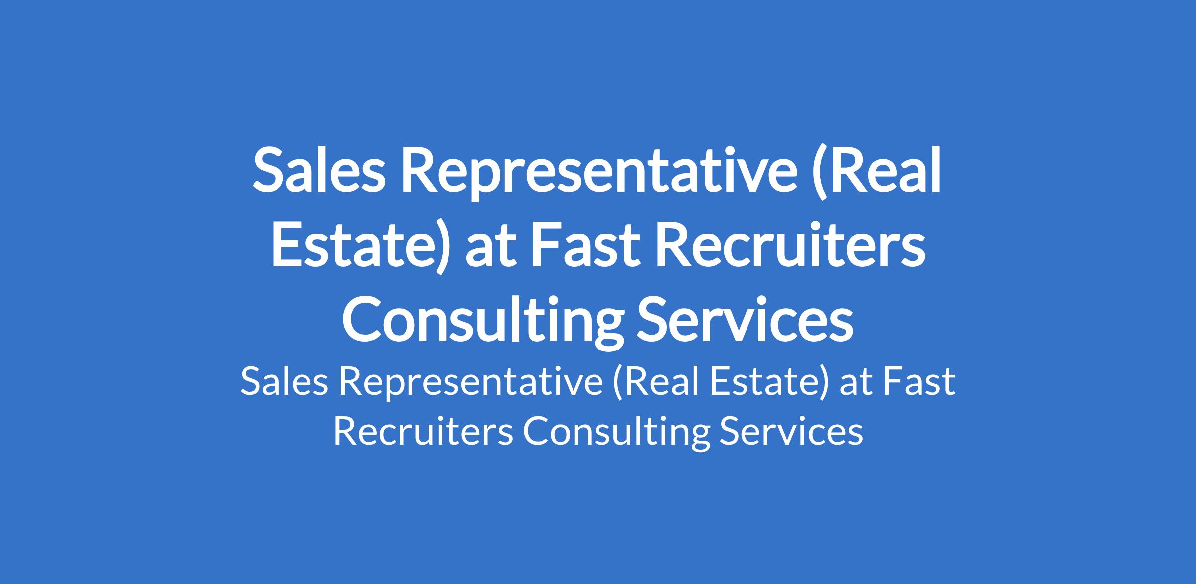 Fast Recruiters Consulting Services is recruiting to fill the position of: Sales Representative (Real Estate). The position is located in Owerri, Imo State. Salary: N100,000 monthly. Interested candidates should possess an OND or Bachelor's Degree with 2 - 3 years sales experience.