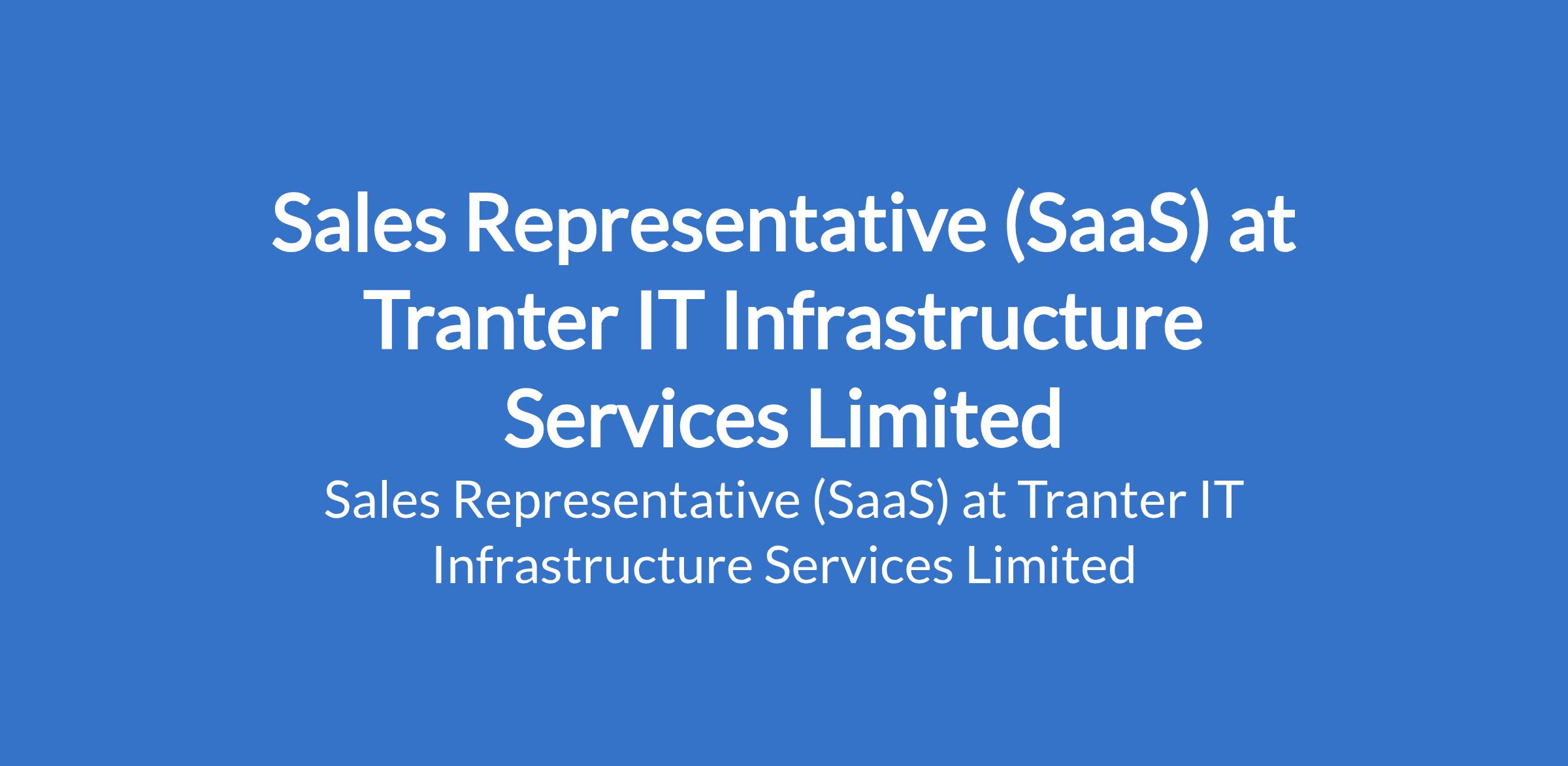 Tranter IT Infrastructure Services Limited is recruiting to fill the position of: Sales Representative (SaaS). The position is located in Lagos State. Interested candidates should possess relevant qualifications with proven experience in SaaS / software sales and must be available to work 1PM 10PM WAT (non-negotiable).