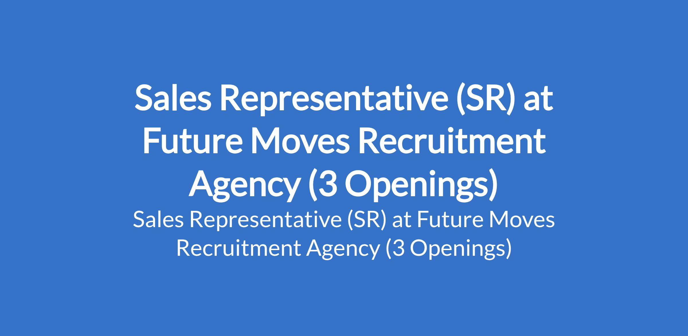 Future Moves Recruitment Agency is recruiting to fill the position of: Sales Representative (SR). The position is located in Ibadan - Oyo, Benin - Edo, and Owerri - Imo States. Interested candidates should possess a minimum of OND (field sales experience is an added advantage) with at least 1 year field sales experience in FMCG or related sector.