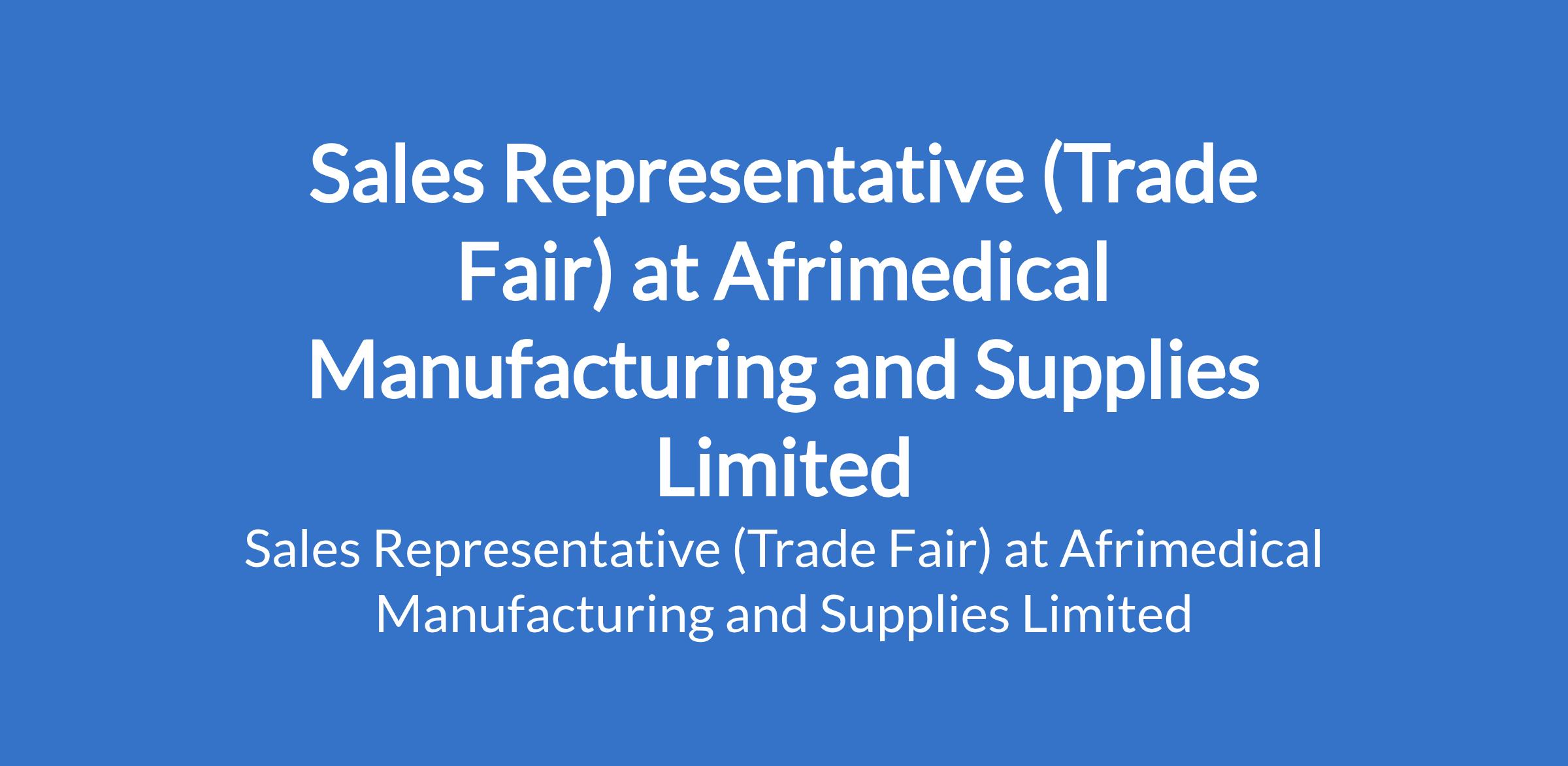 Afrimedical Manufacturing and Supplies Limited is recruiting to fill the position of: Sales Representative. The position is located in Trade Fair, Lagos State. Interested candidates should possess a Bachelors Degree in Business, Marketing, Sales, or a related field with proven experience as a Sales Representative or similar sales role.