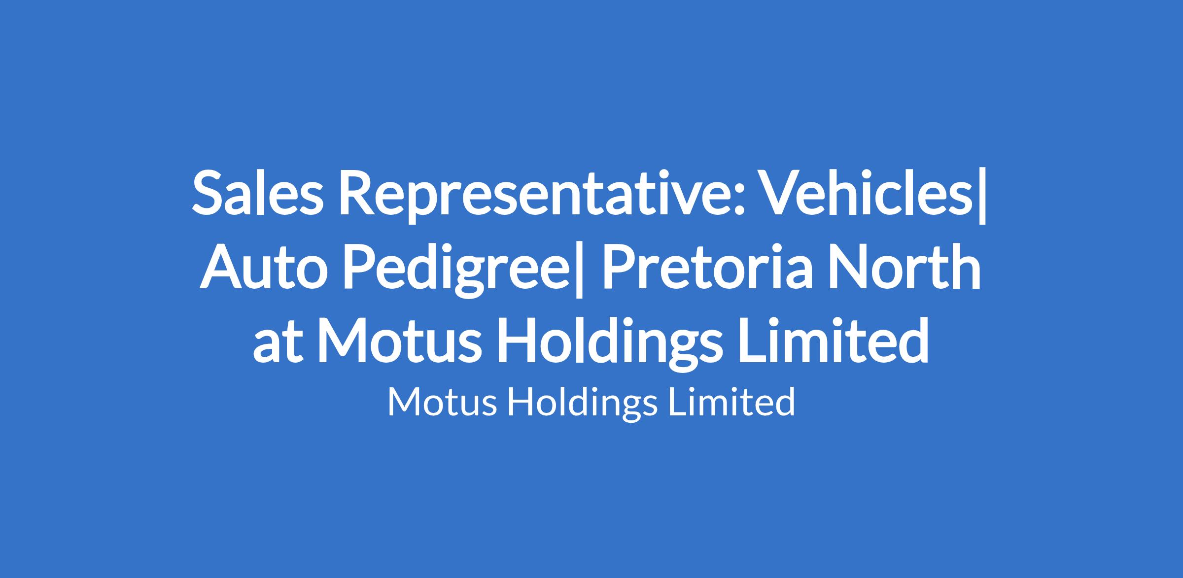 Sales Representative: Vehicles| Auto Pedigree| Pretoria North at Motus Holdings Limited