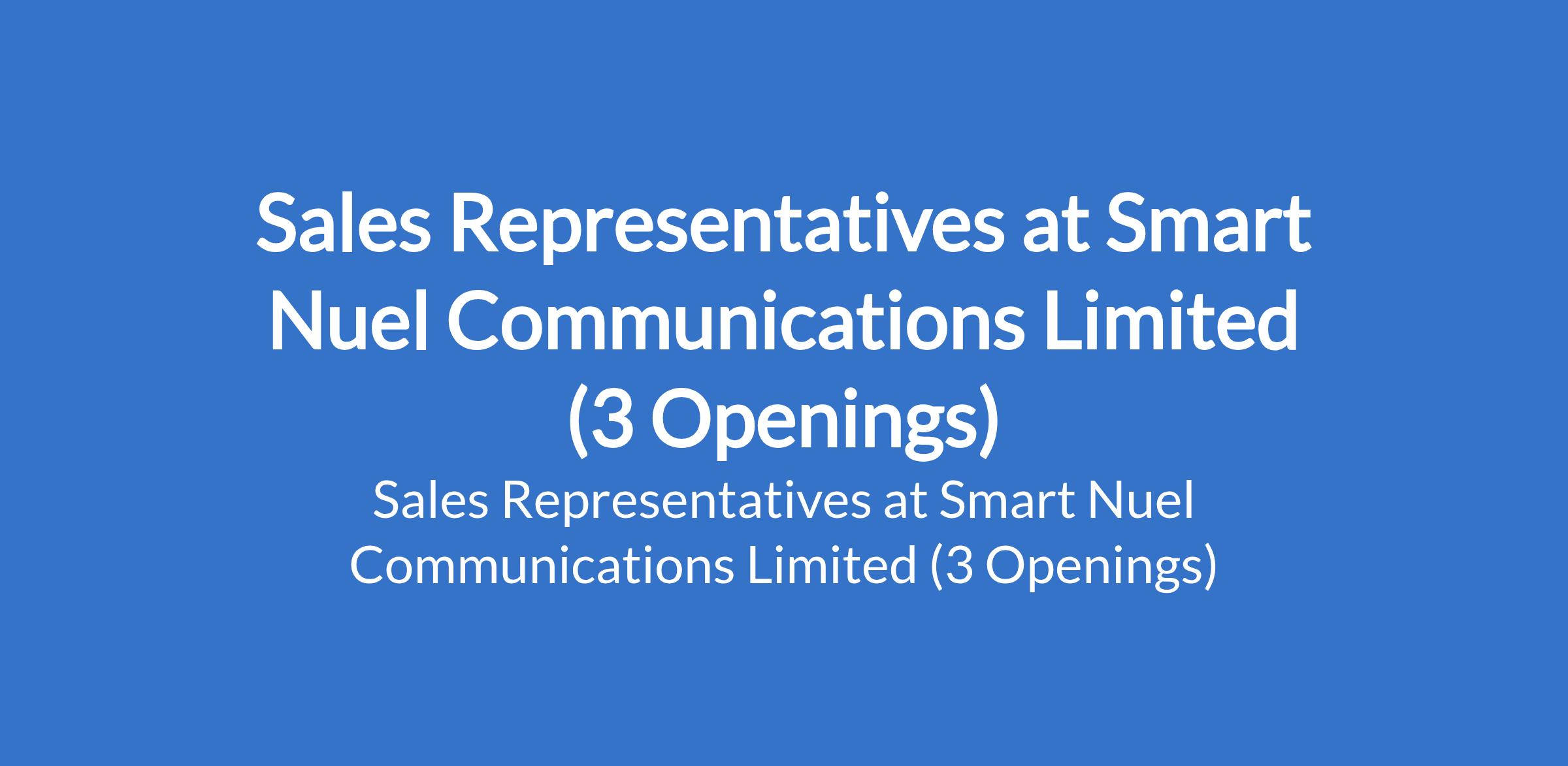 Smart Nuel Communications Limited is recruiting to fill the position of: Sales Representative. The position is located in Alaba, Lekki - Lagos and Bayelsa States. Salary: N80,000 monthly. Interested candidates should possess an SSCE / OND in Accounting, Business Administration, or related fields with 1-2 years experience.