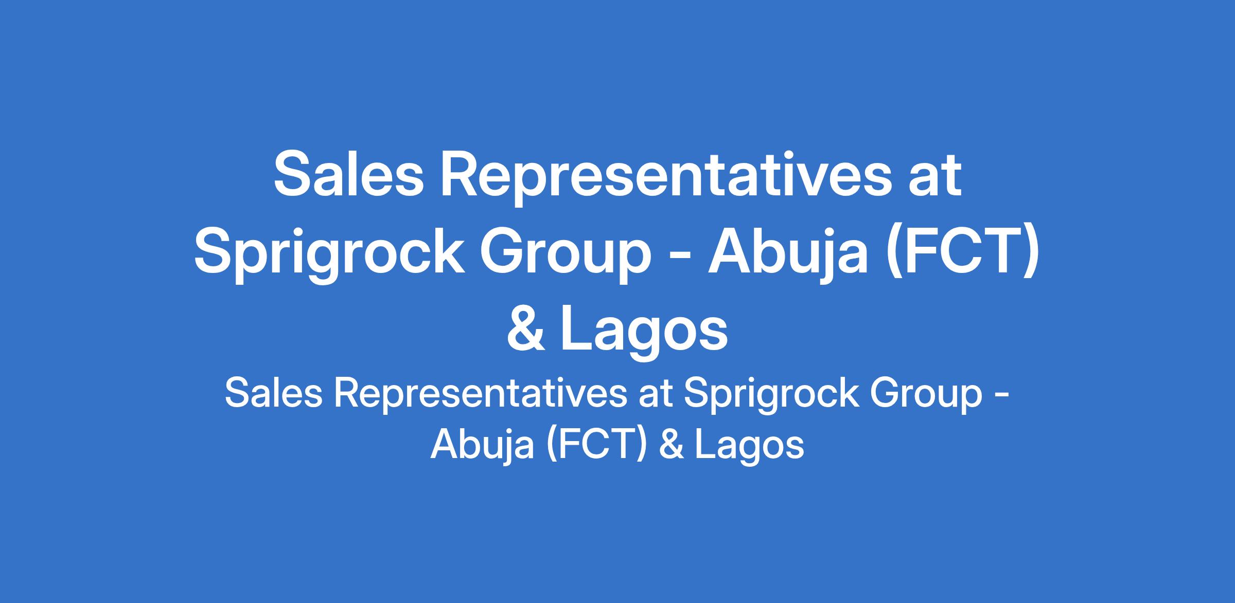 Sprigrock Group is recruiting to fill the position of: Sales Representative. The position is located in Abuja (FCT) & Lagos State. Interested candidates should possess a minimum of 2 years post-NYSC experience in Sales or Customer Service, and must be able to resume within one week.