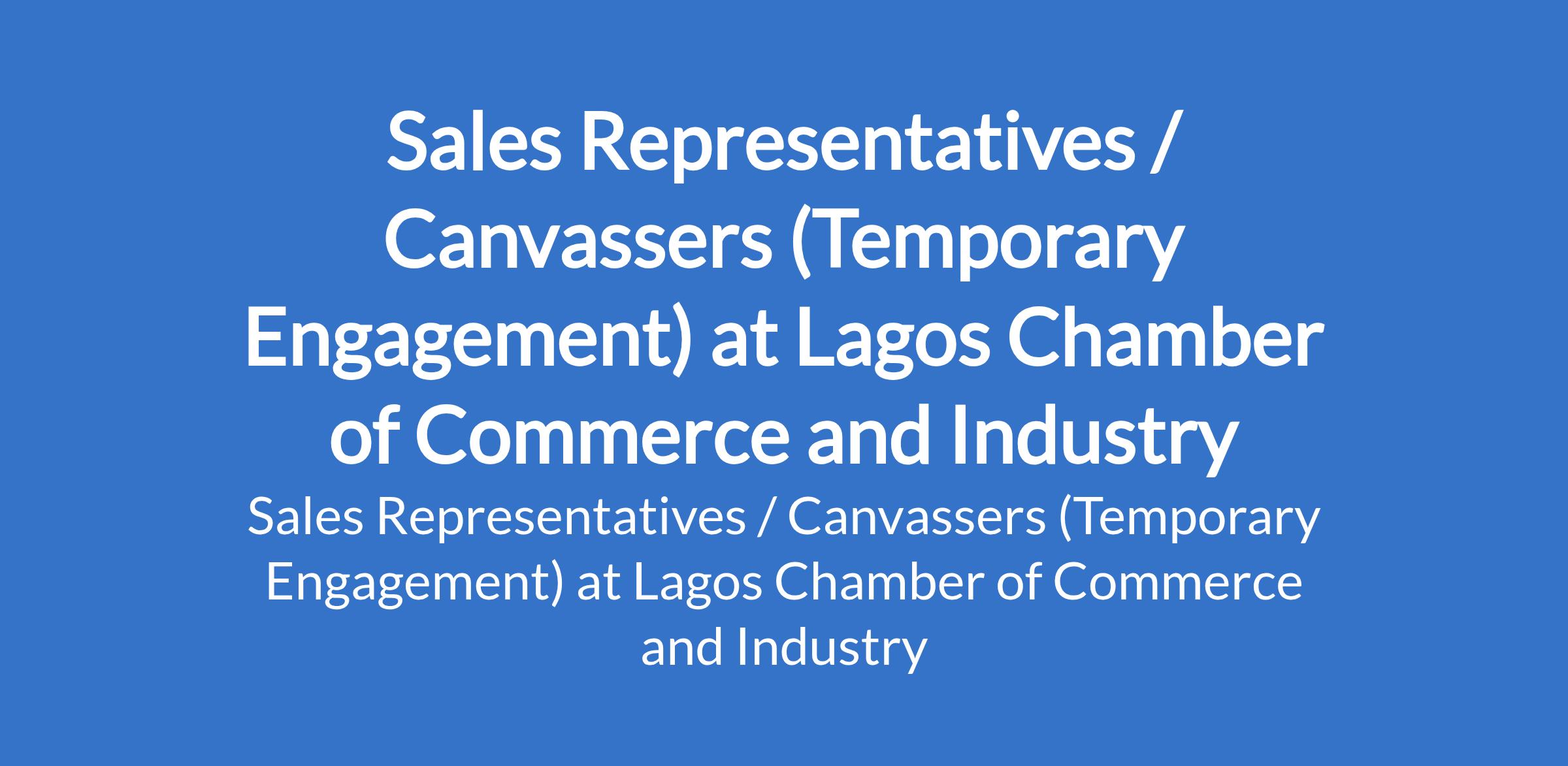 Lagos Chamber of Commerce and Industry is recruiting to fill the position of: Sales Representative / Canvasser. The position is located in Lagos State. Interested candidates should possess a minimum of SSCE (mature and experienced), OND, HND, or Bachelors Degree in Marketing, Business Administration, Economics, or related disciplines with experience.