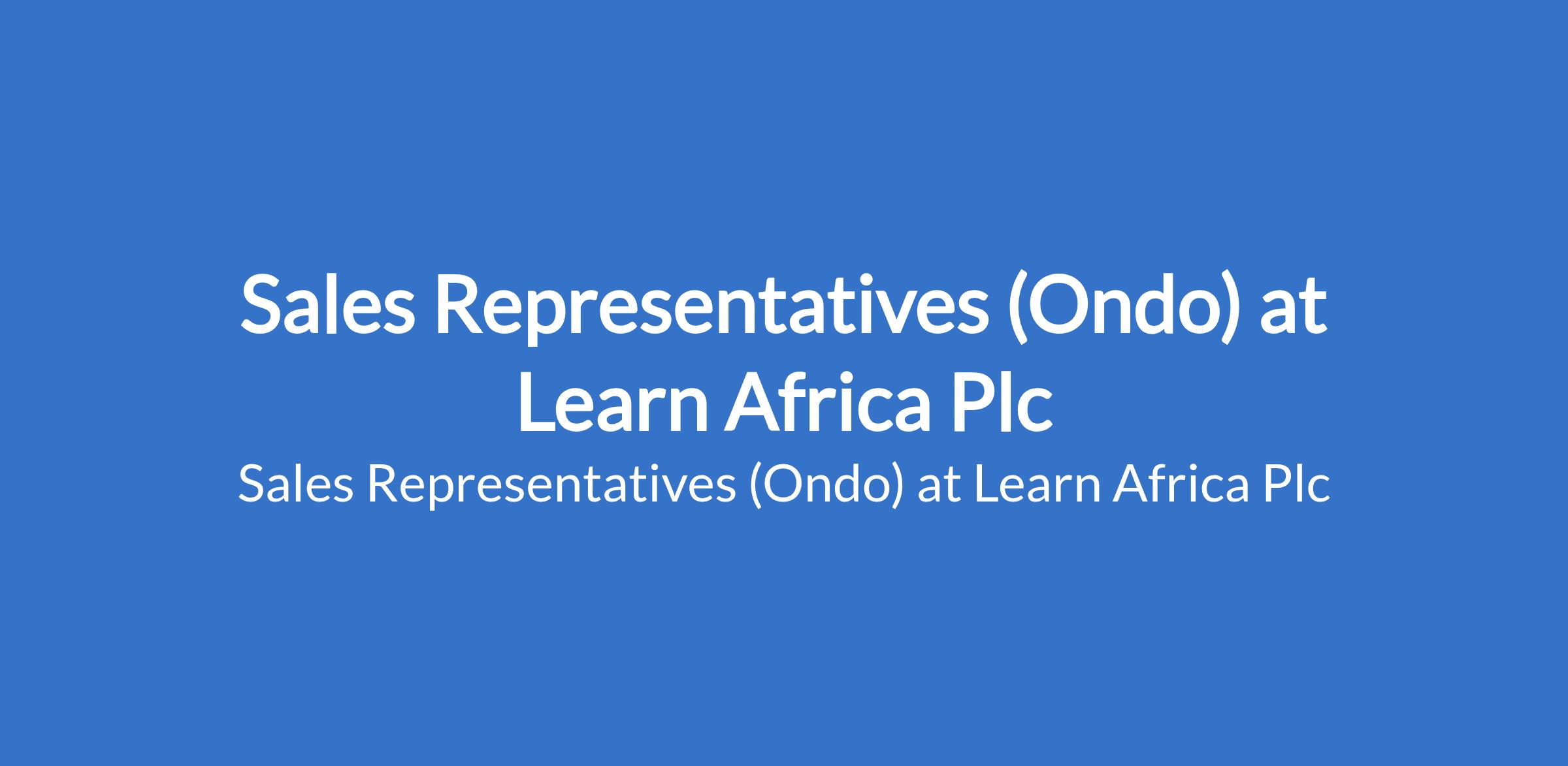 Learn Africa Plc is recruiting to fill the position of: Sales Representative. The position is located in Akure, Ondo State. Interested candidates should possess an HND / B.Sc in Humanities or Social Science discipline with a minimum of 2 years sales experience.