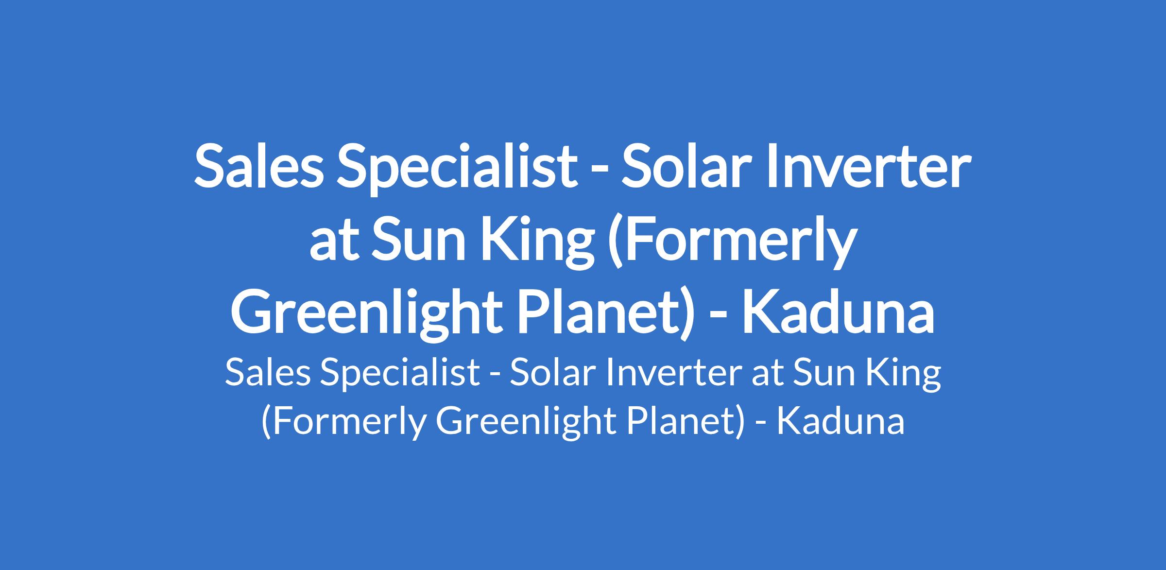 Sun King (Formerly Greenlight Planet) is recruiting to fill the position of: Sales Specialist - Solar Inverter. The position is located in Kaduna State. Interested candidates should possess a Degree in a Business-related field or it's equivalent with at least 3 years hands on experience in inverter Sales.