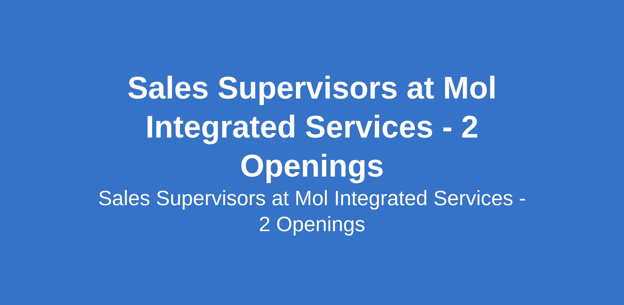 Mol Integrated Services is recruiting to fill the position of: Sales Supervisor. The position is located in Owerri - Imo, & Onitsha - Anambra States. Salary: N200,000 - N300,000 / month. Interested candidates should possess relevant qualifications with years of work experience.