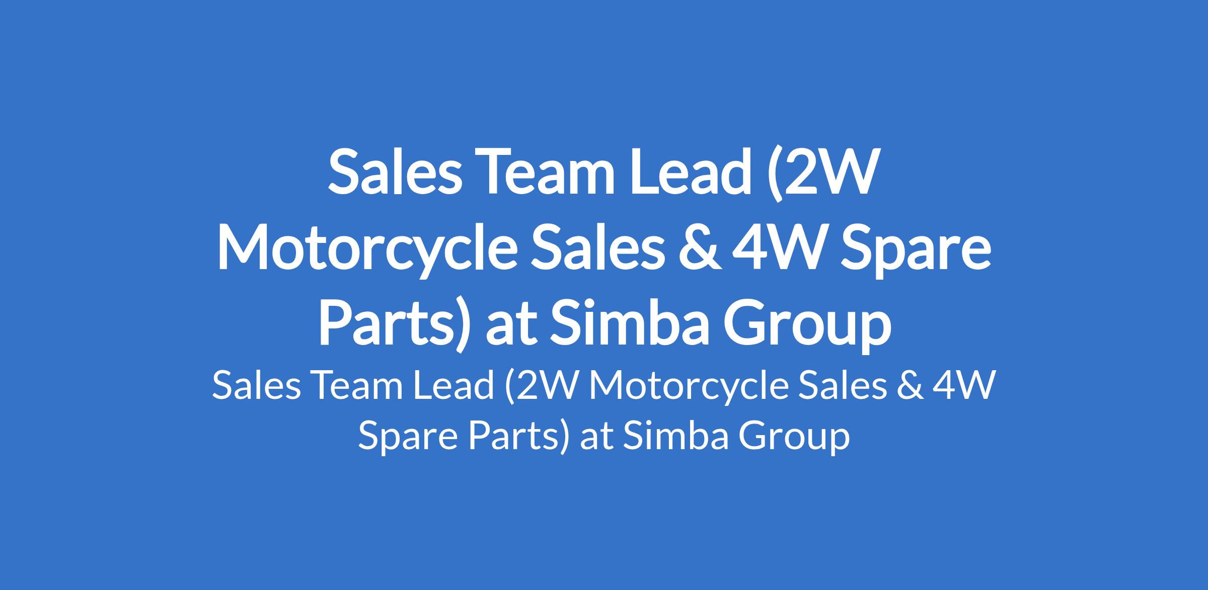 Simba Group is recruiting to fill the position of: Sales Team Lead (2W Motorcycle Sales & 4W Spare Parts). This role is required nationwide. Interested and qualified candidates should possess an HND / B.Sc Degree in Marketing, Business Administration, or related disciplines with 25 years of sales experience in the automobile (two-wheeler or three-wheeler) industry.