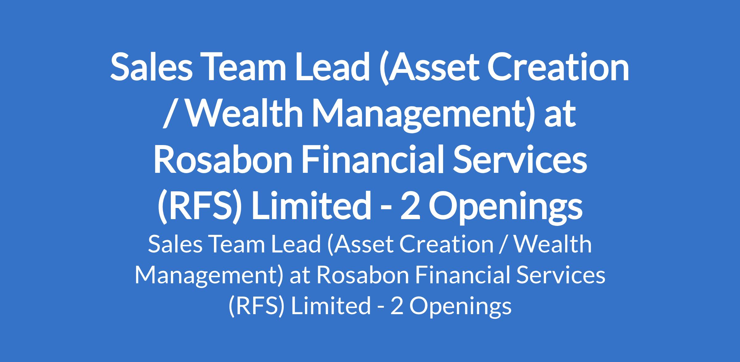 Rosabon Financial Services is recruiting to fill the position of: Sales Team Lead (Asset Creation / Wealth Management). The position is located in Abuja (FCT) and Benue State. Salary: N220,000 - N300,000 monthly. Interested candidates should possess a First Degree in any discipline from a reputable academic institution with 5 years+ of progressive experience in sales and marketing of financial products (Consumer Lending).