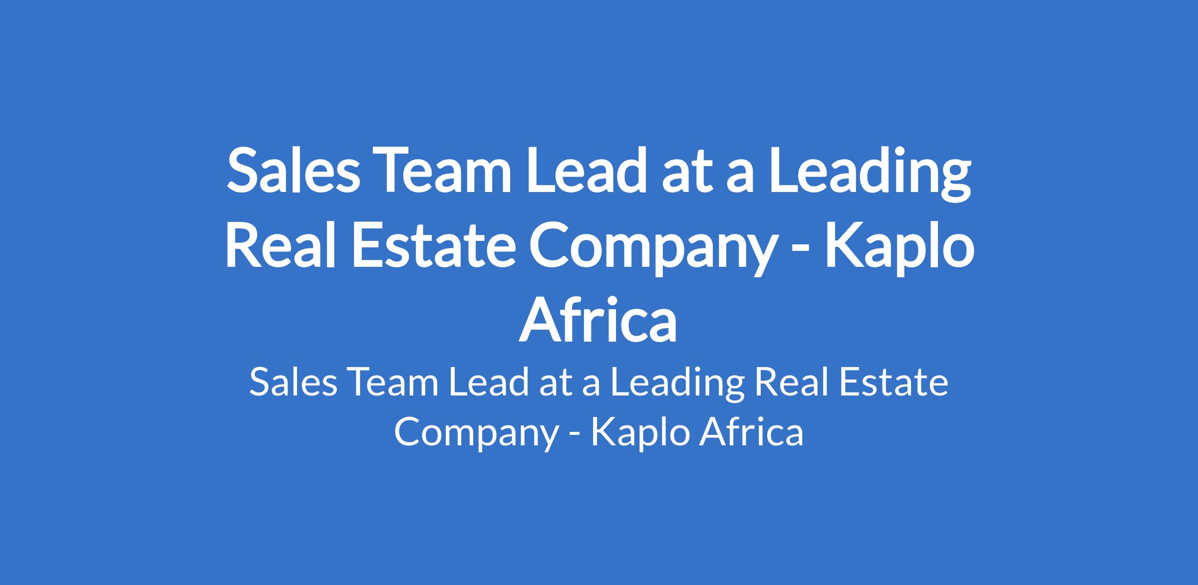 Kaplo Africa - Our client, a leading Real Estate Company is recruiting to fill the position of: Sales Team Lead. The position is located in Lagos State. Interested candidates should possess a minimum of 5 years experience in sales, preferably in real estate or a related industry.