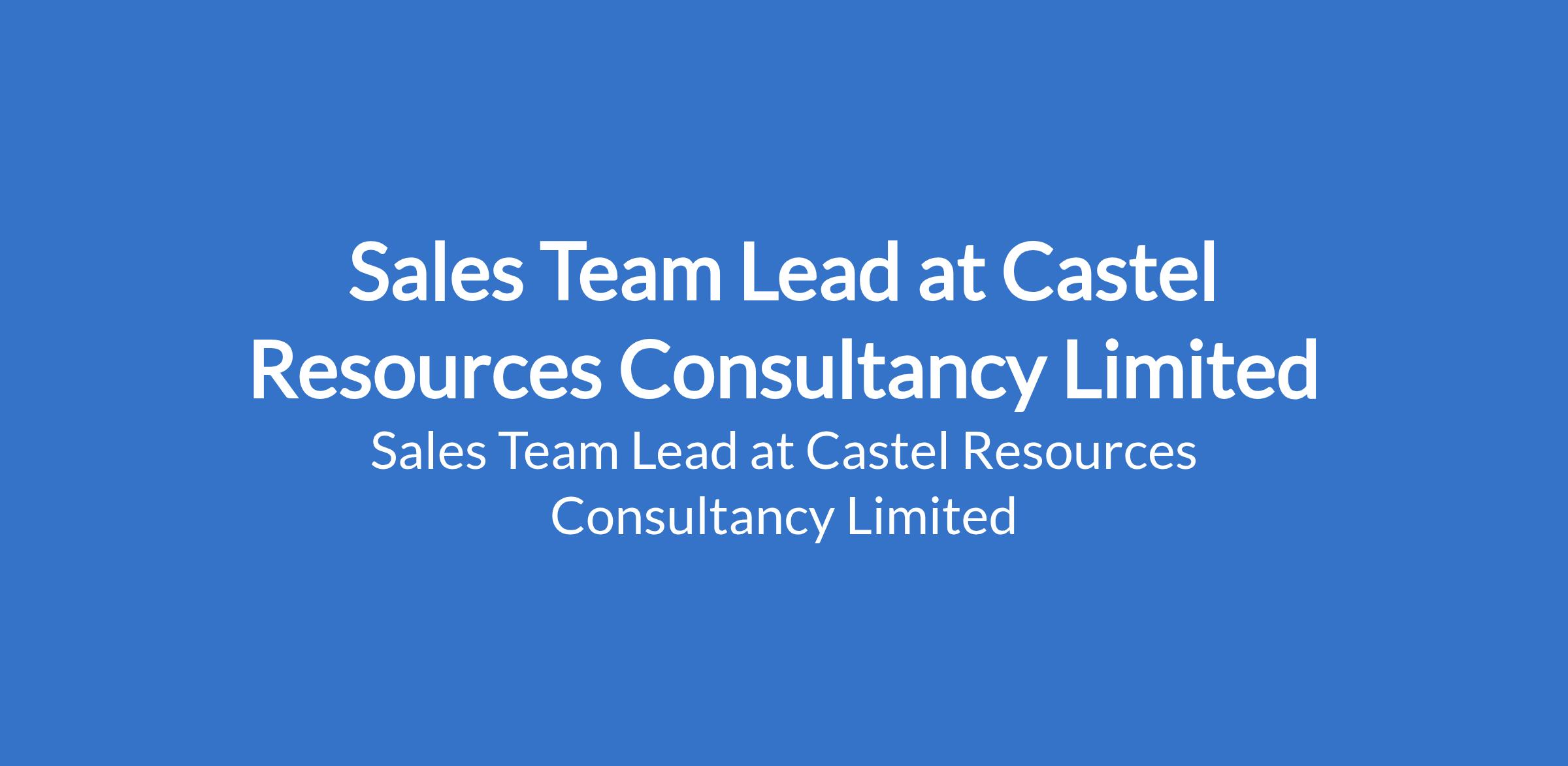 Castel Resources Consultancy Limited is recruiting to fill the position of: Sales Team Lead. The position is located in Port Harcourt, Rivers State. Interested candidates should possess a Bachelors Degree in Finance, Accounting, Business Administration, Economics, or a related field5 - 8 years of experience in financial services (preferred but not always required).