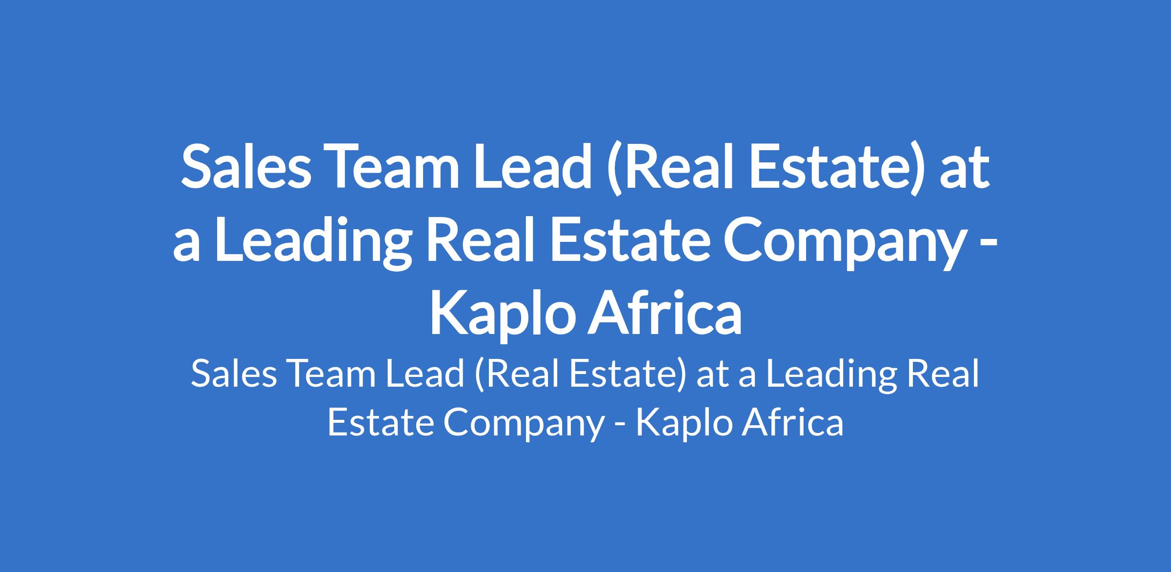 Kaplo Africa - Our client, a leading real estate company is recruiting to fill the position of: Sales Team Lead (Real Estate). The position is located in Ibadan, Oyo State. Salary: N250,000 monthly. Interested candidates should possess relevant qualifications with a minimum of 5 years experience in sales, preferably in real estate or a related industry.