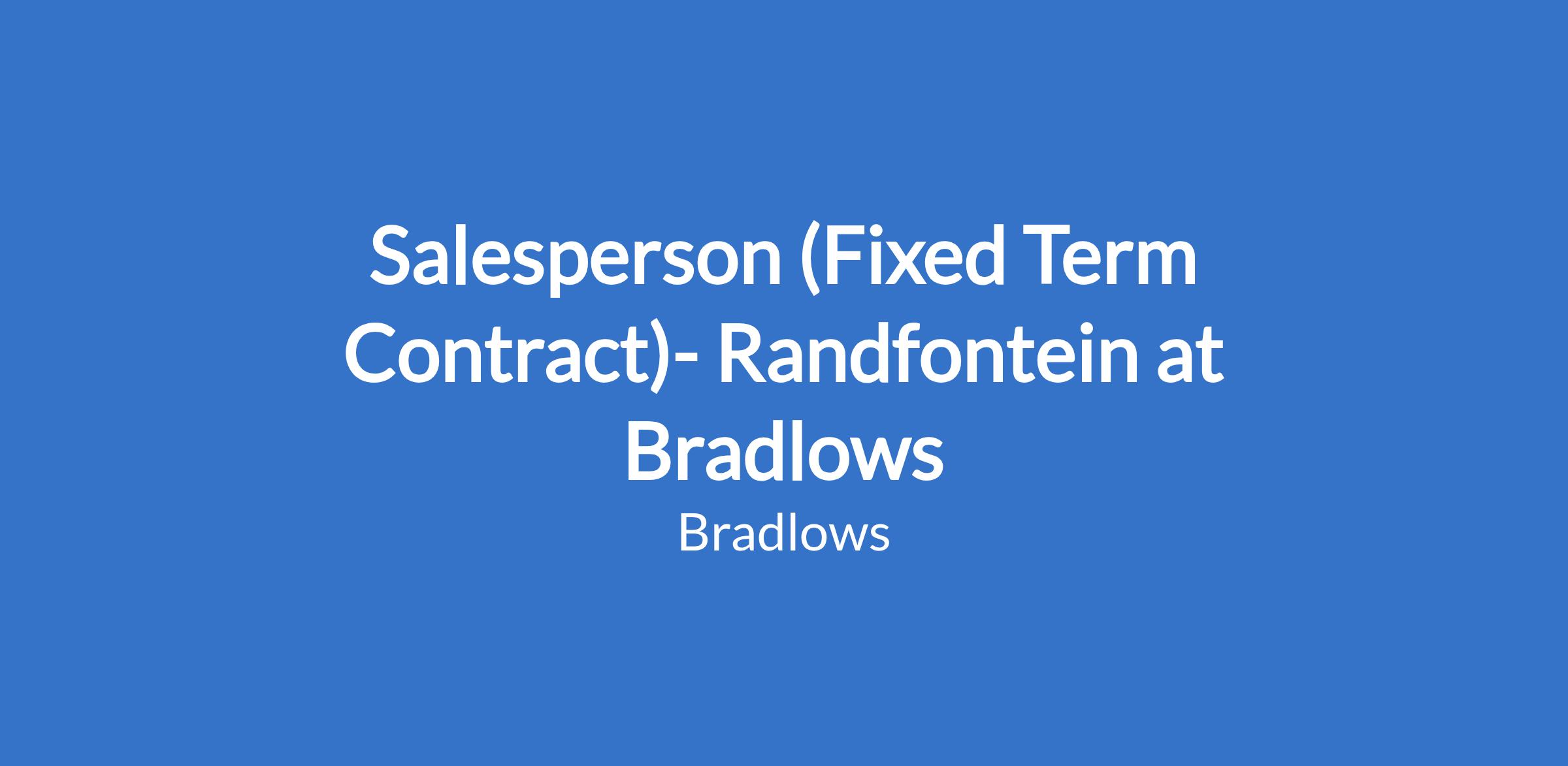 Salesperson (Fixed Term Contract)- Randfontein at Bradlows