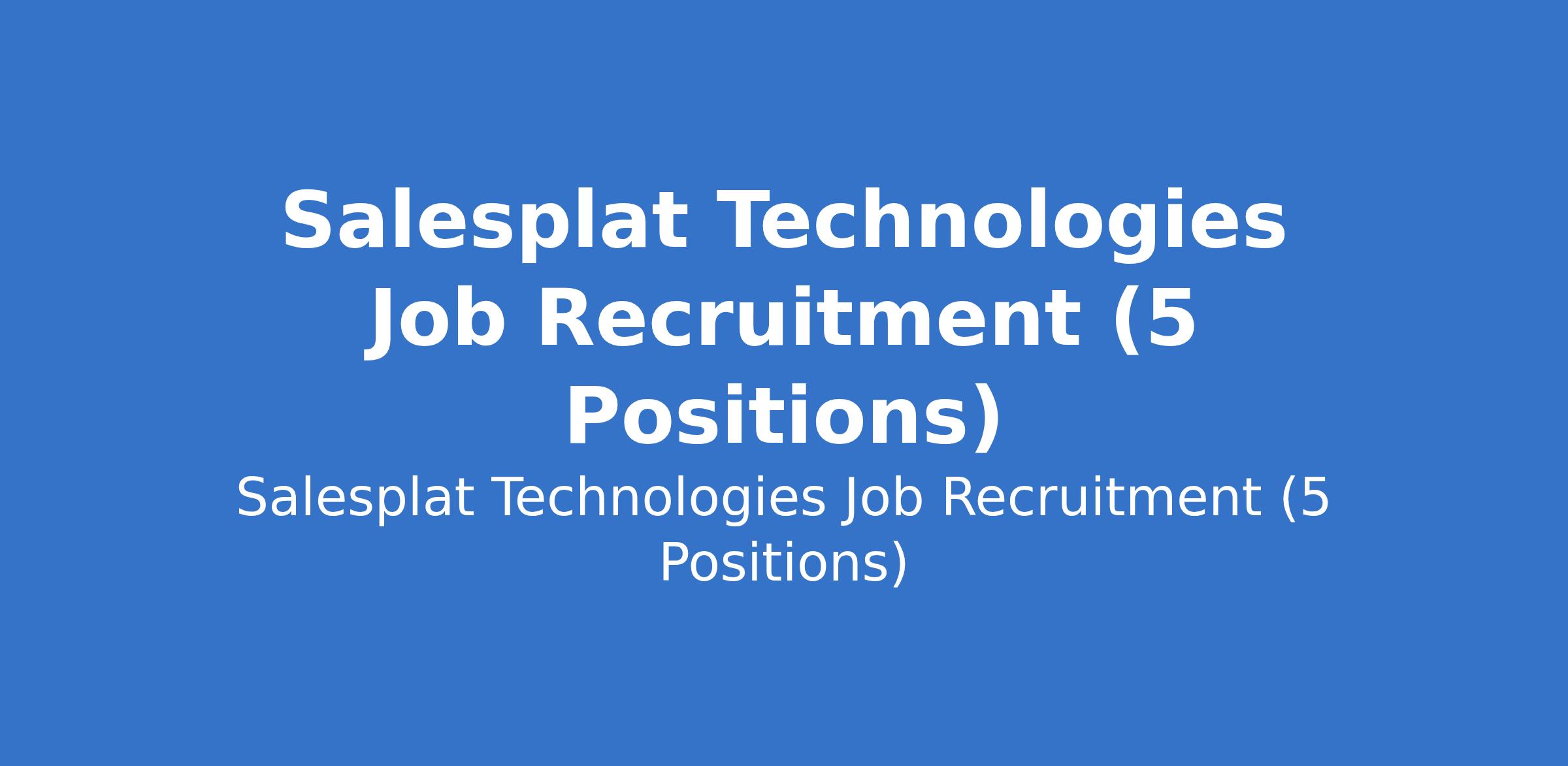 Salesplat Technologies Job Recruitment (5 Positions)