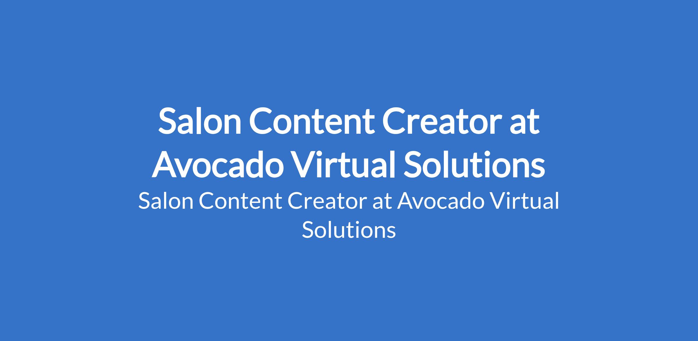 Avocado Virtual Solutions is recruiting to fill the position of: Salon Content Creator. The position is located in Town (no Marhaba / Nyanya), Abuja (FCT). Salary: N100,000 N120,000 monthly. Interested candidates should possess relevant qualifications.