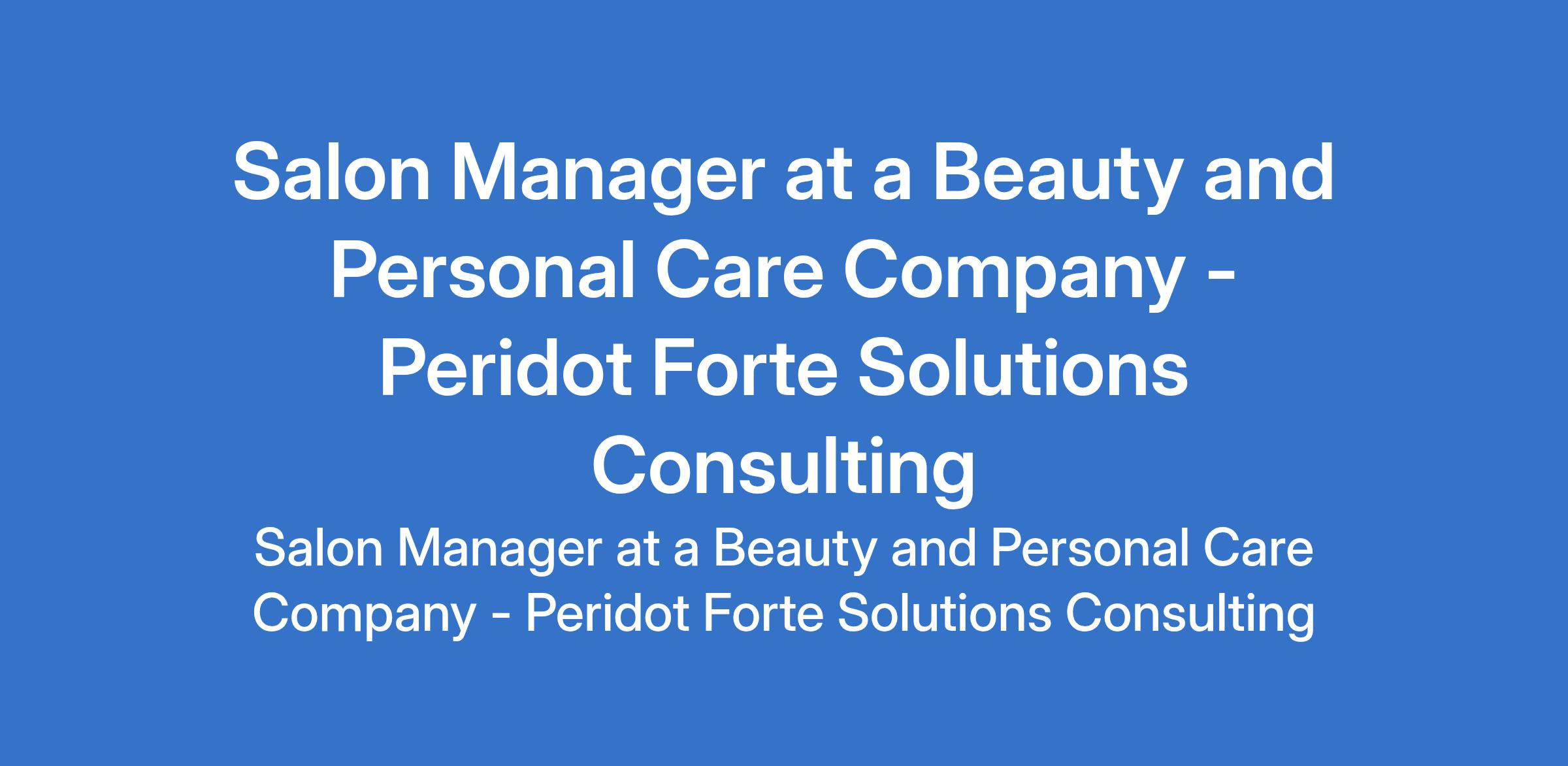 Peridot Forte Solutions Consulting - Our client in the beauty and personal care industry is recruiting to fill the position of: Salon Manager. The position is located in Surulere, Lagos State. Interested candidates should possess an OND qualifications in any related discipline with 1+ years experience in a supervisory, coordination, or leadership role. Proximity to Surulere axis is strongly preferred.