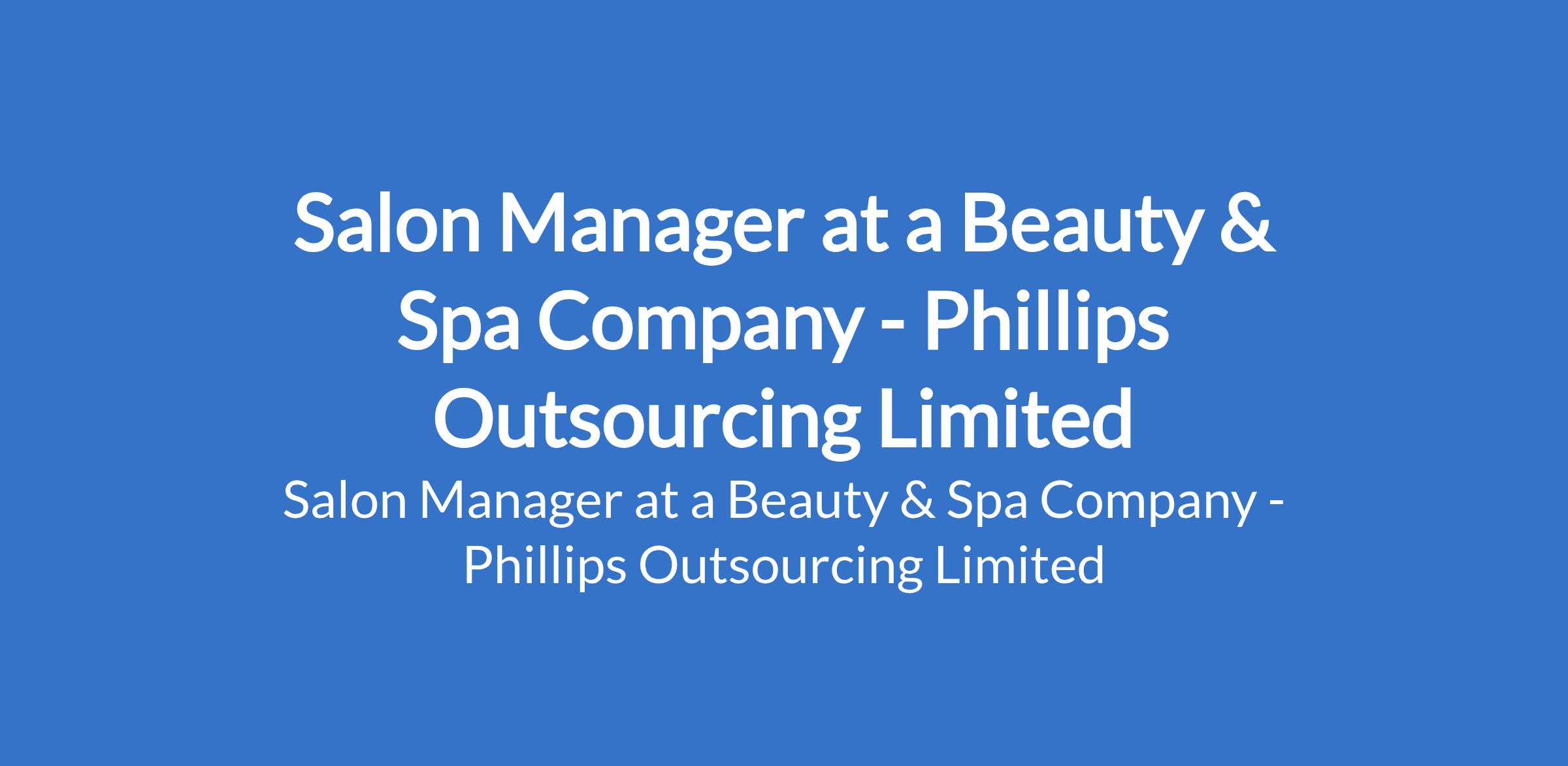 Phillips Outsourcing Limited - Our client in the Beauty & Spa Industry is recruiting to fill the position of: Salon Manager. The position is located in Lekki Phase 1, Lagos State. Salary: N300,000 - N350,000 / Month. Interested candidates should possess a Bachelors' Degree / FSLC / HND / NCE / OND / SSCE / GCE / NECO with proven experience as a Salon Manager or in a similar supervisory role within the beauty /spa industry and must reside within or around Lekki Phase 1 or be able to commute daily.